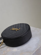 VINYLE SMALL ROUND BAG 17 IN BLACK CAVIAR LEATHER GOLD HARDWARE