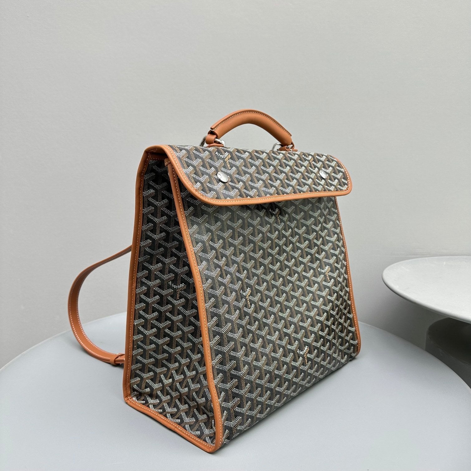 LEGER BACKPACK 37 IN GRAY GOYARDINE CANVAS WITH CALFSKIN TRIM