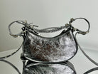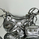 LE CAGOLE SMALL SHOULDER BAG 26 WITH RHINESTONES IN SILVER METALLIC ARENA LAMBSKIN