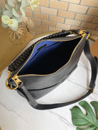 MAIDA HOBO 33CM BLACK MONOGRAM EMBOSSED GRAINED COWHIDE