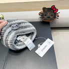 STRIPED KNITTED HAT IN LIGHT GRAY WOOL 424514