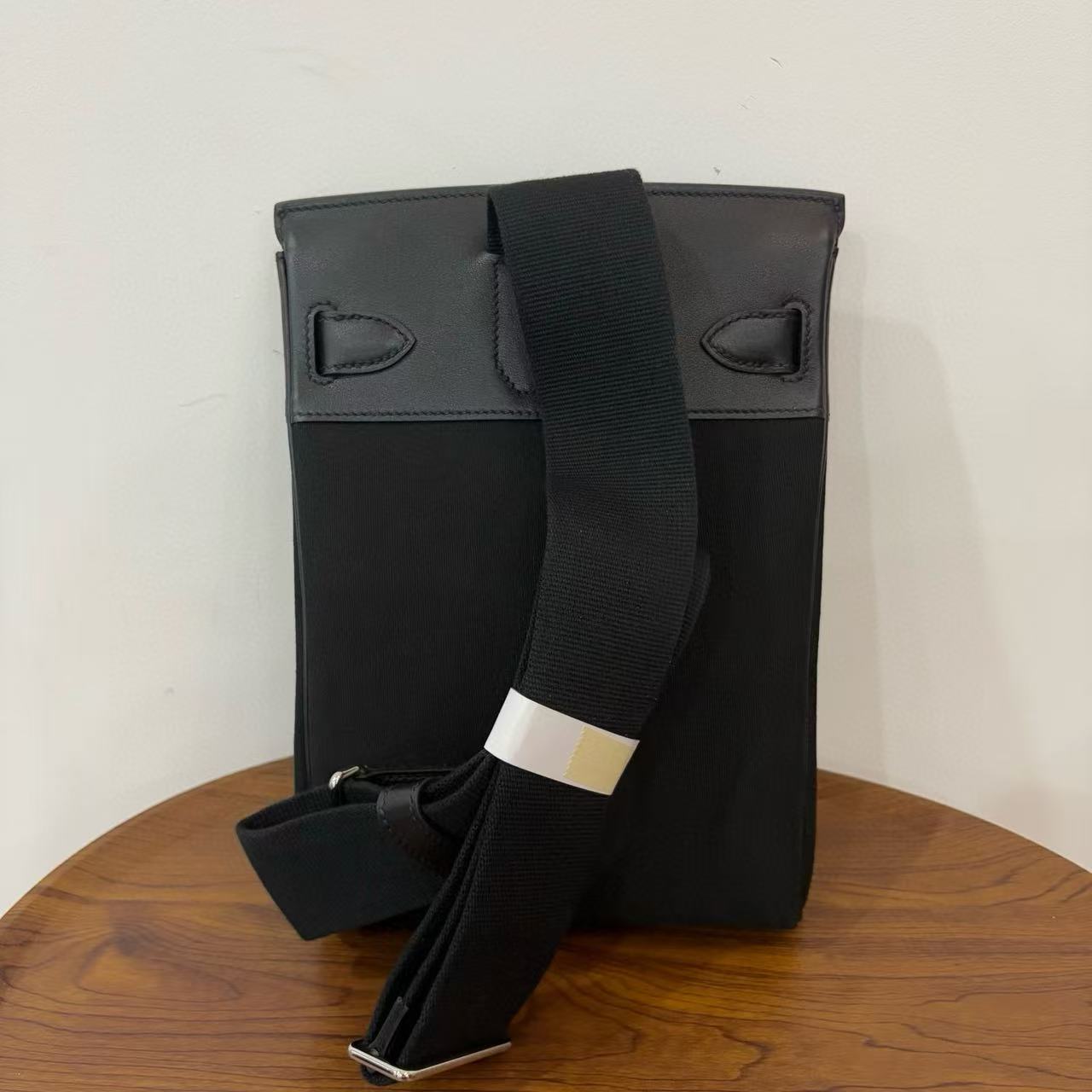 HM 25 Hac a Dos PM Bag Black Silver Woolycot Canvas And Swift Calfskin
