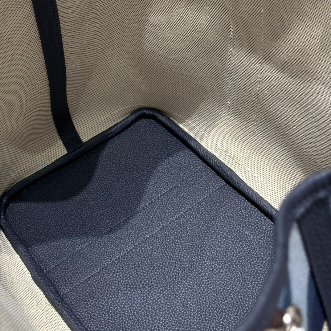 HM Garden Party 36 Beige mix Navy Blue Canvas and Negonda Calfskin 243391