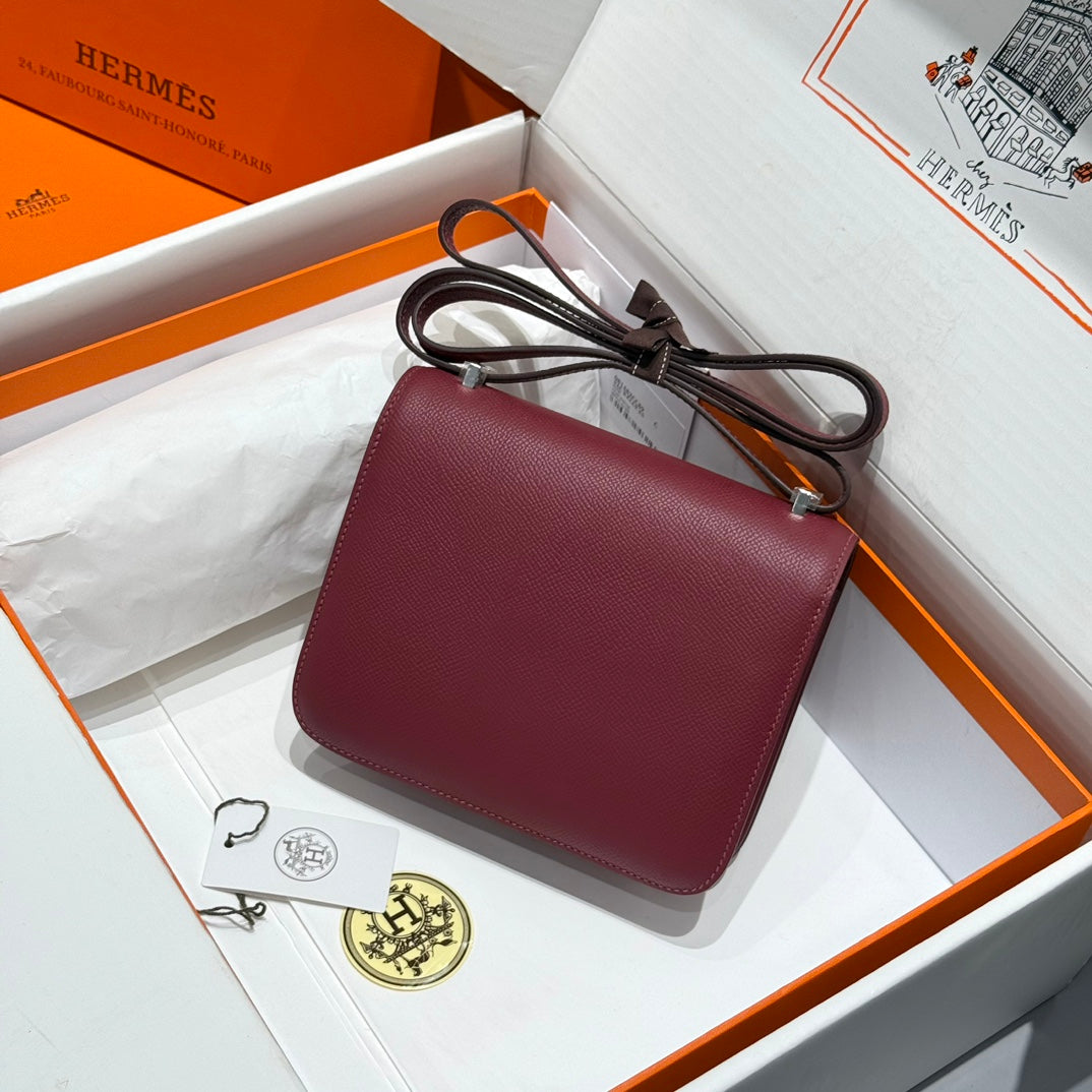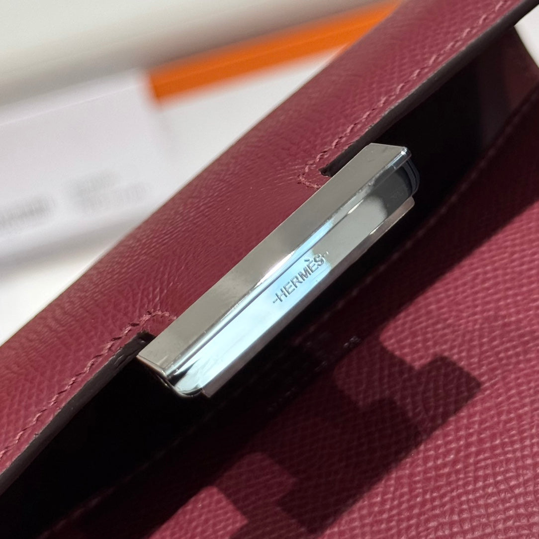 HM CONSTANCE 18 DARK RED EPSOM SILVER HARDWARE 243163