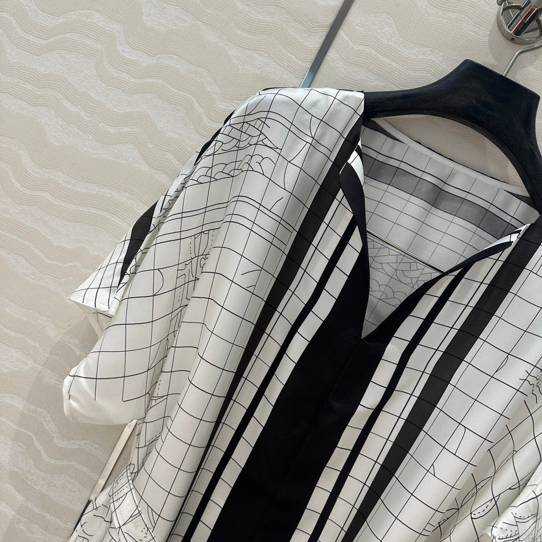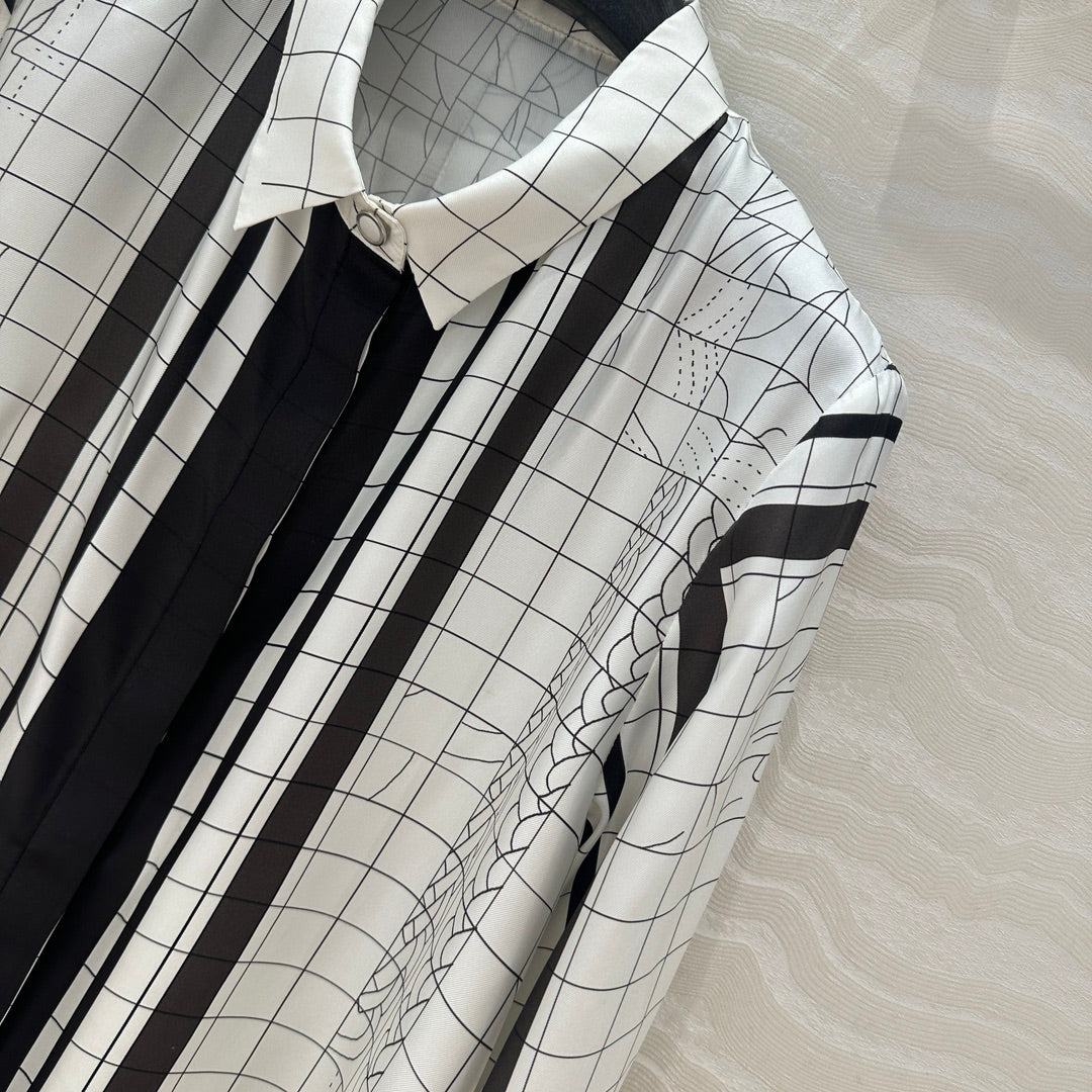 Hm 25 Coaching Deja Vu Shirt Dress White Black Silk