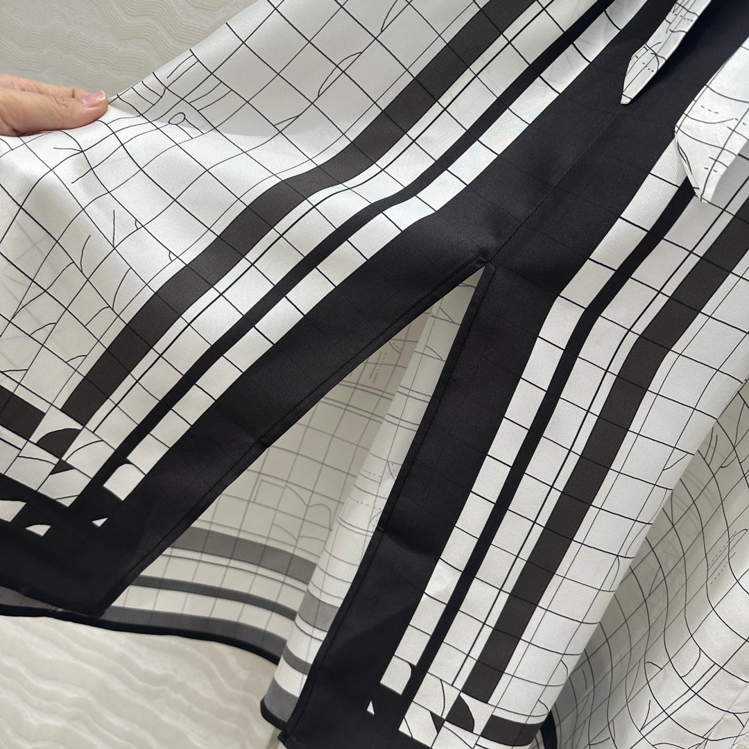 Hm 25 Coaching Deja Vu Wide-leg Straight Pants White Black Silk