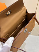 HM KELLY POCHETTE 22CM BROWN SWIFT SILVER HARDWARE