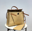 Herbag 31 Toile Beige Canvas Gold Cowhide Leather