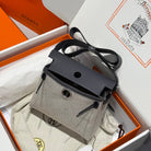 HM Mini Herbag Silver Buckle 20 Beige Grey Canvas and Hunter Cowhide 243290