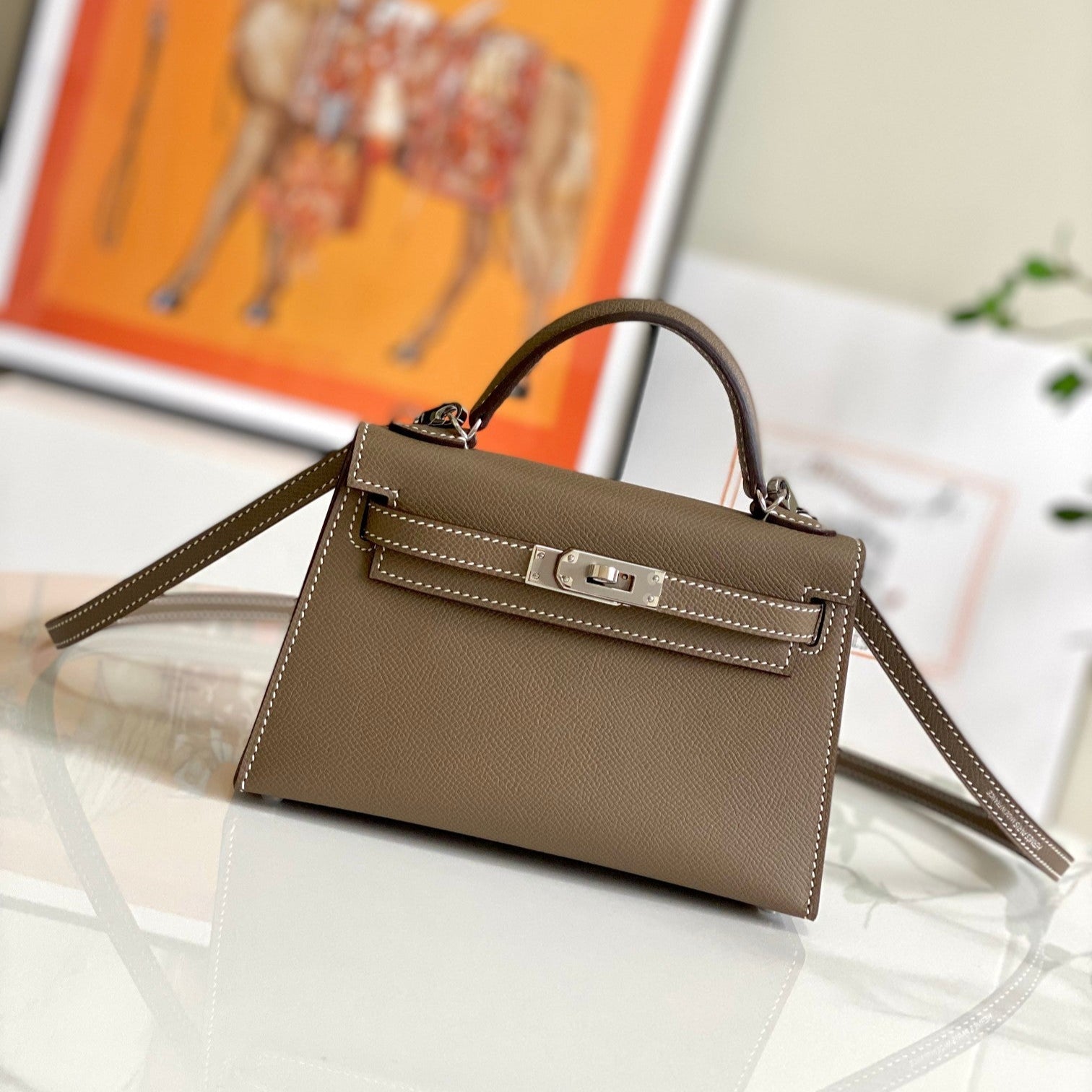HM Mini Kelly 19cm Elephant Grey Epsom Silver Hardware
