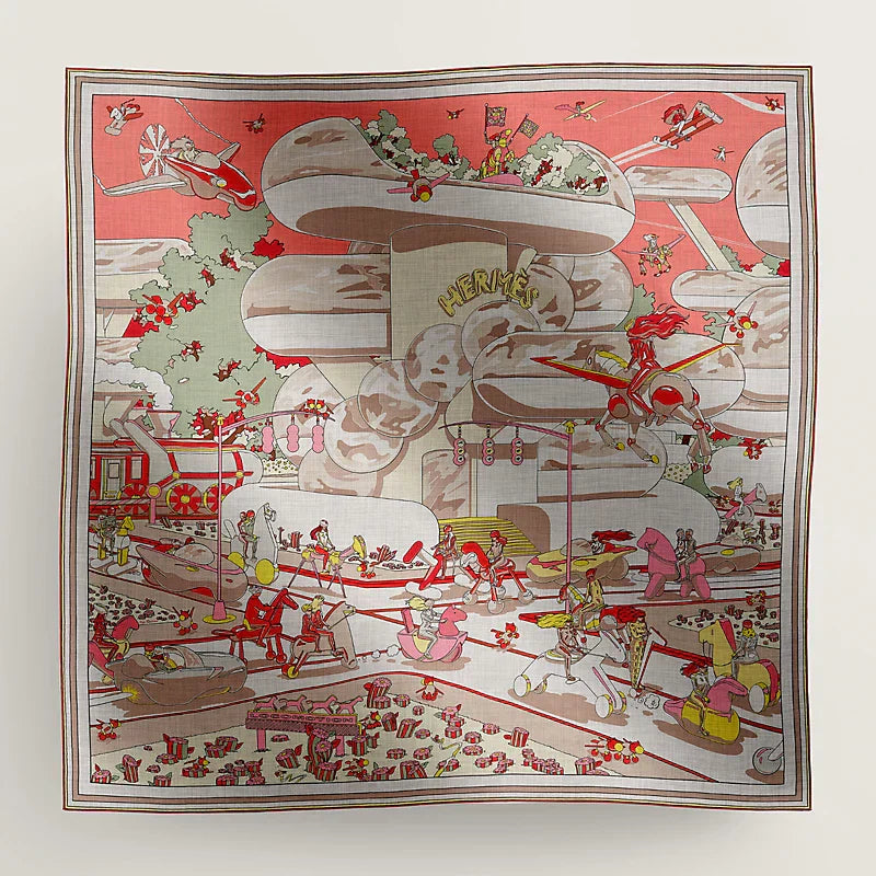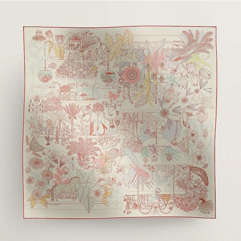 Retourala Nature Hermes Scarf 140 CM White Pink Colorful Silk