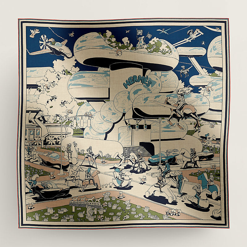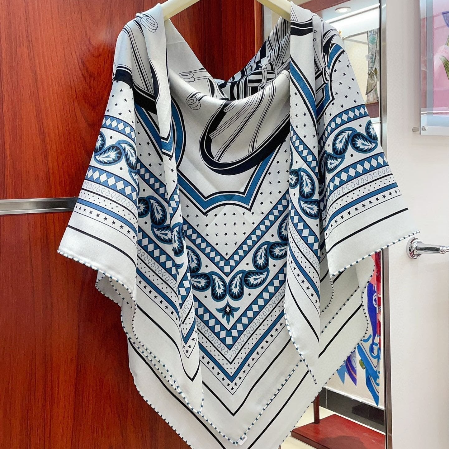 Retourala Nature Hermes Scarf 140 CM Green Gray Colorful Silk