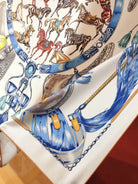 Cavalcades Scarf 90 CM In White Colorful Silk Twill 288860