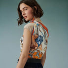Cavalcades Scarf 90 CM In White Orange Colorful Silk Twill 288858