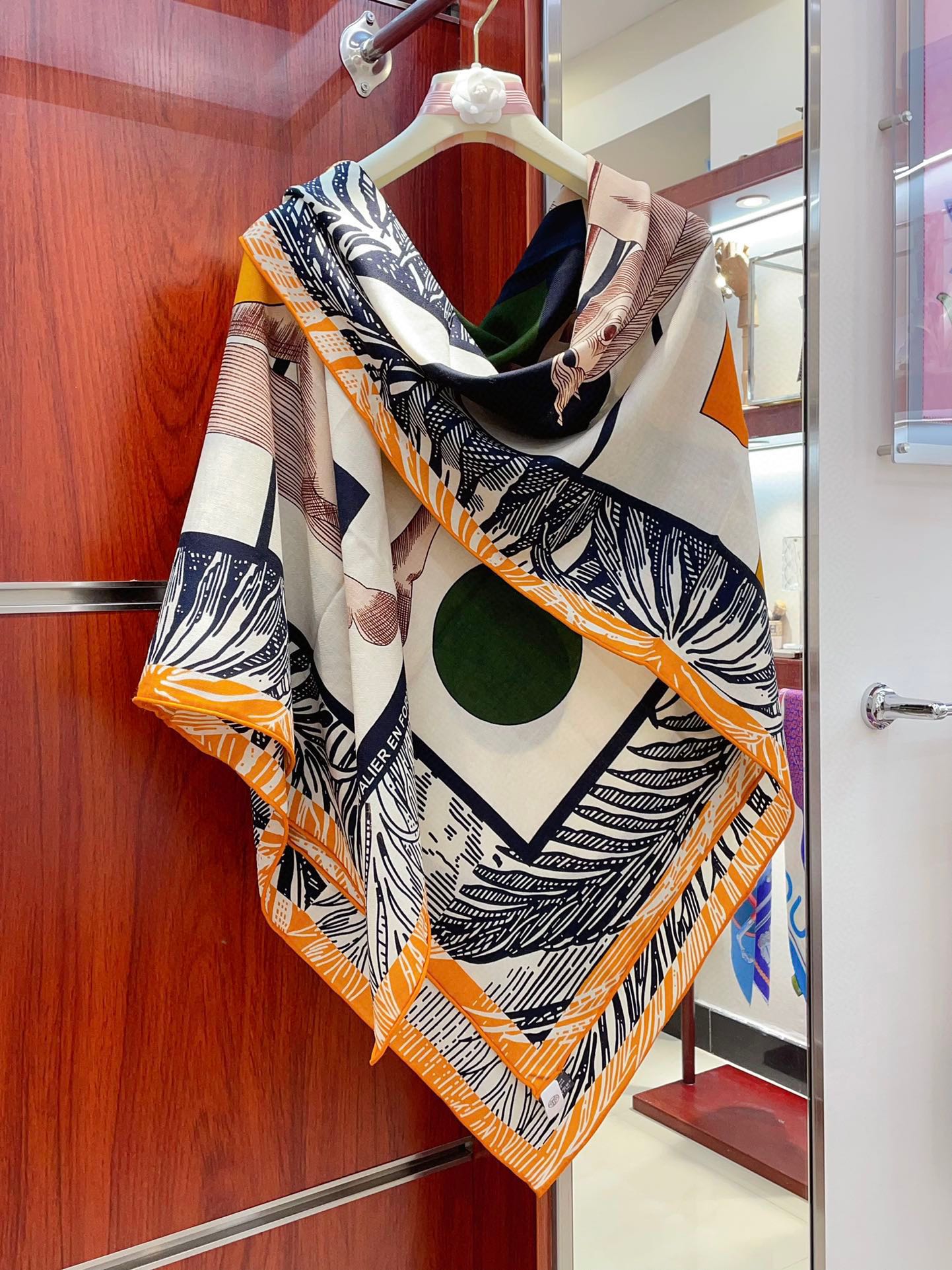 Cavalier en Formes shawl 140 CM In Black Colorful Cashmere And Silk 331716