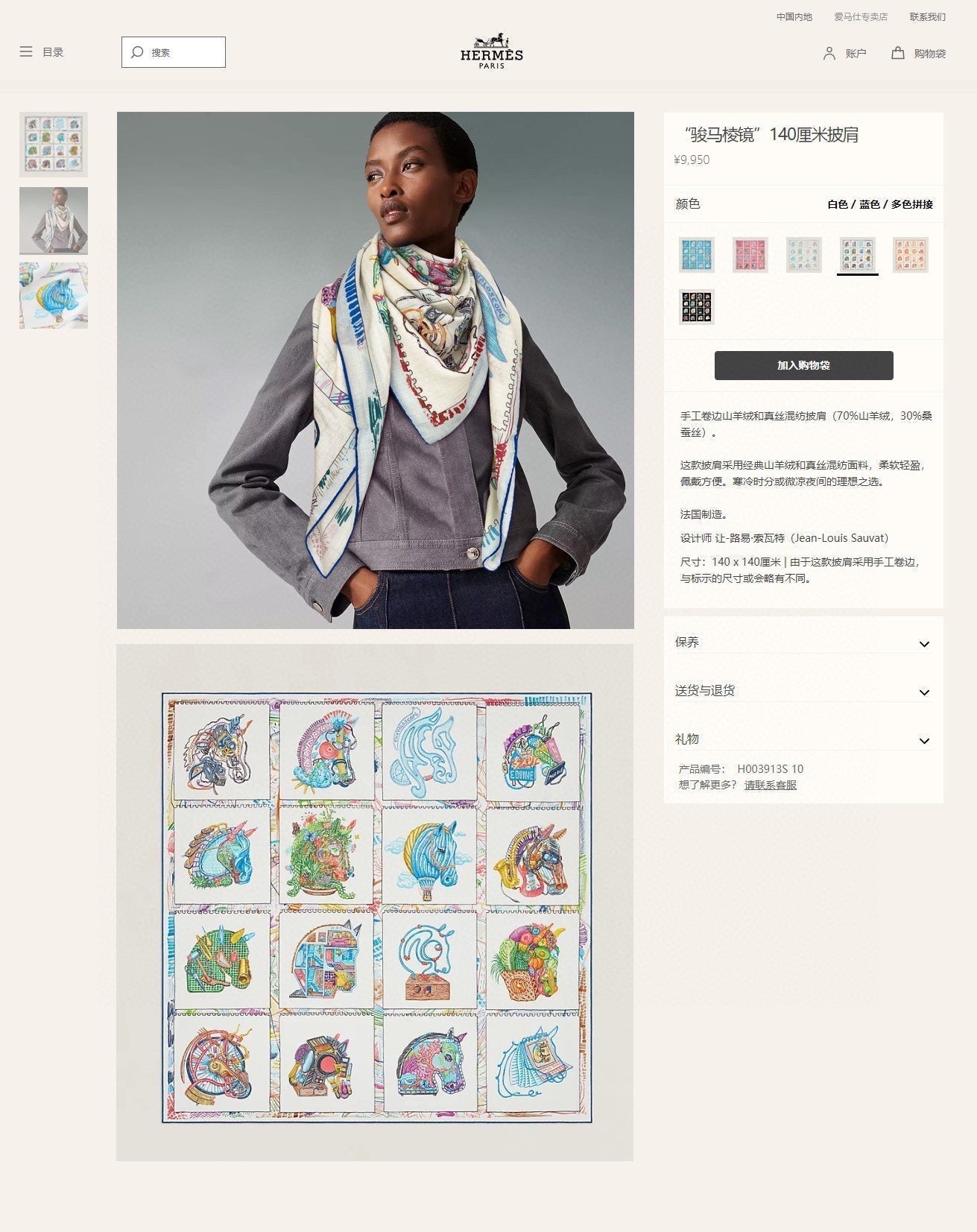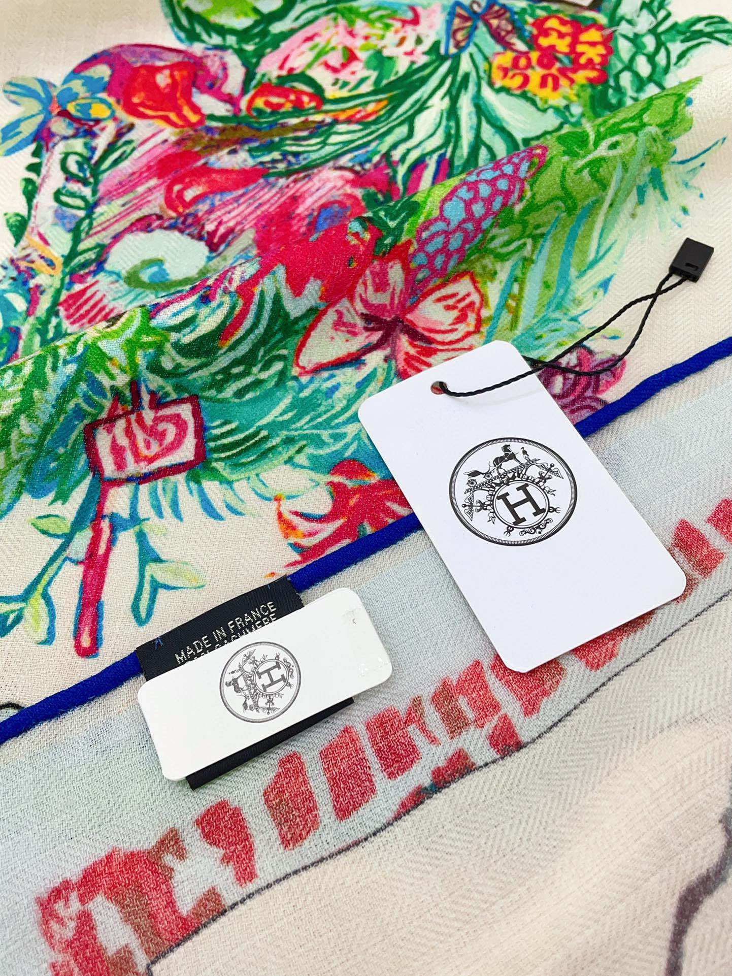 Chevaloscope Scarf 140 CM In Light Blue Colorful Cashmere And Silk 373662