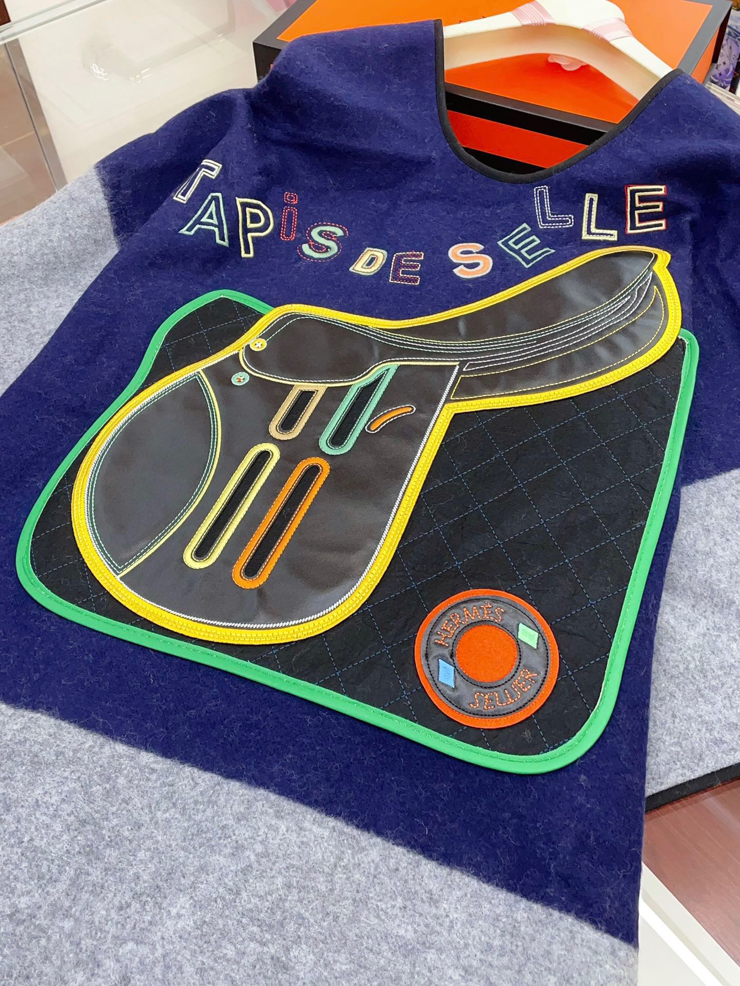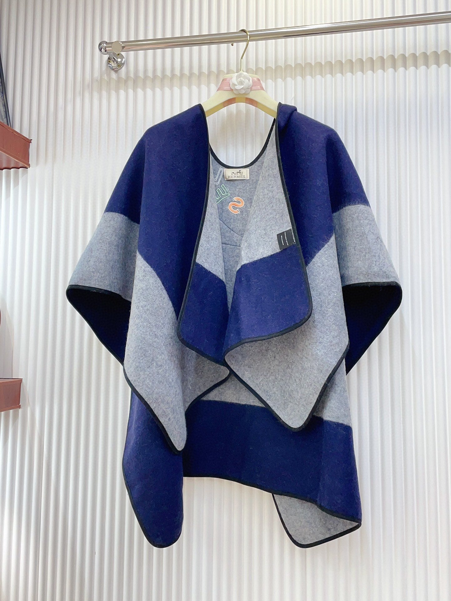 College Poncho 130 CM In Grey Blue Colorful Cashmere 371988