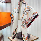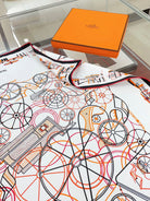 Complication Equestre Scarf 90 CM In White Orange Coloful Silk Twill 345897