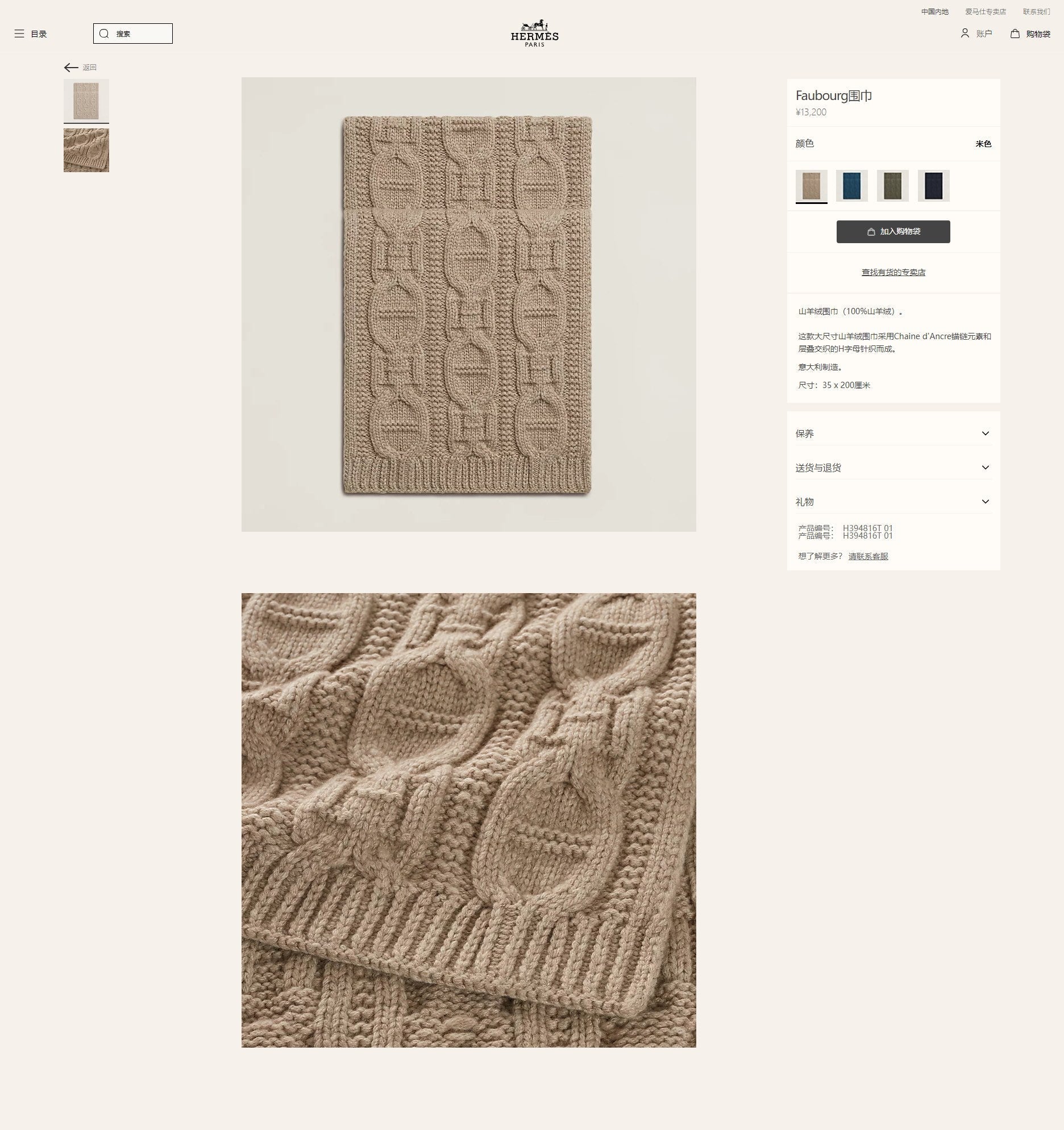 - Material: Cashmere Handwoven