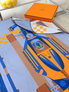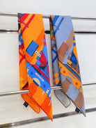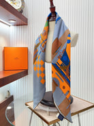 First & Chic Scarf 90 CM In Grey Blue Colorful Silk Twill 202493