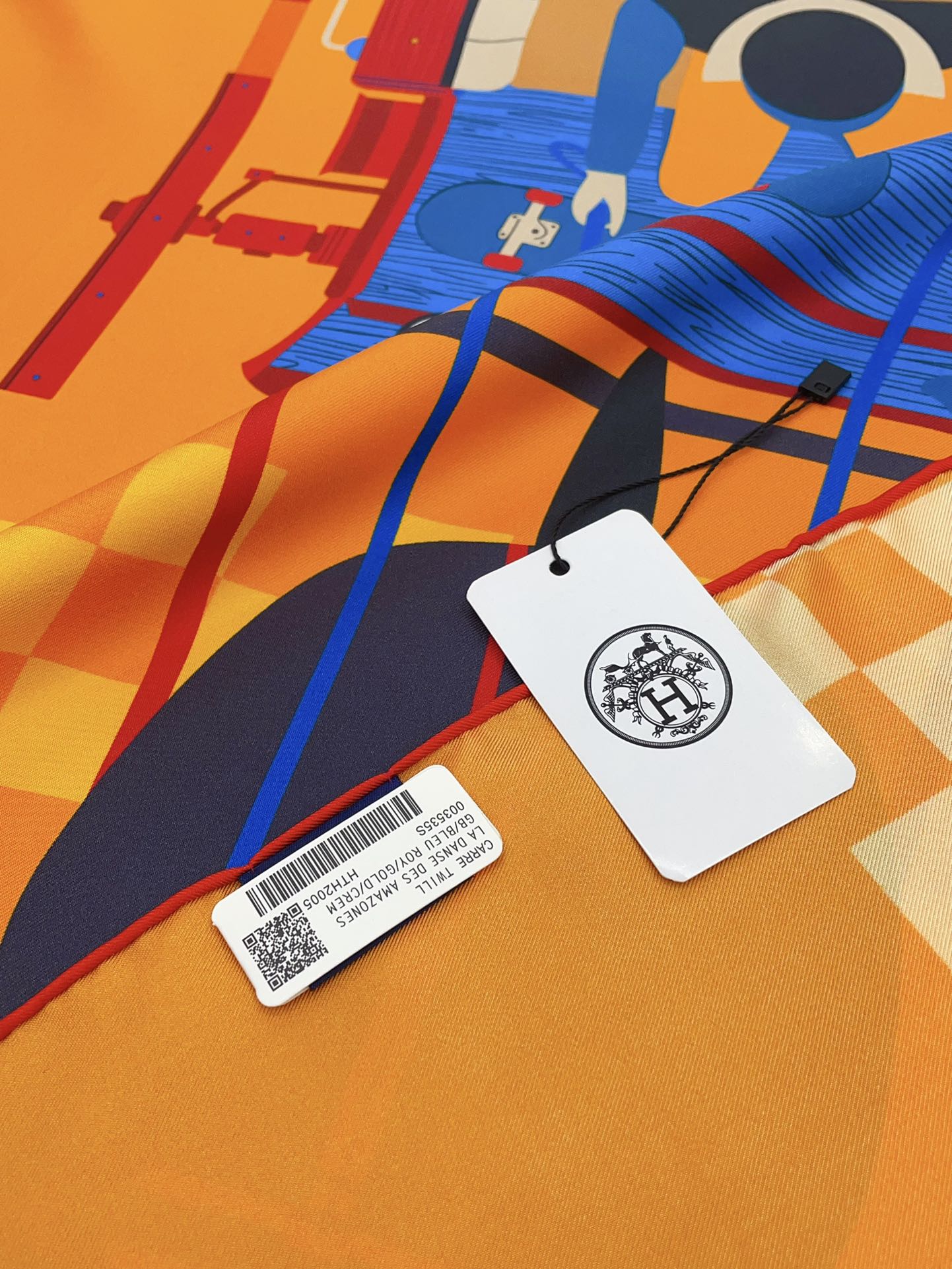 First & Chic Scarf 90 CM In Orange Colorful Silk Twill 202492