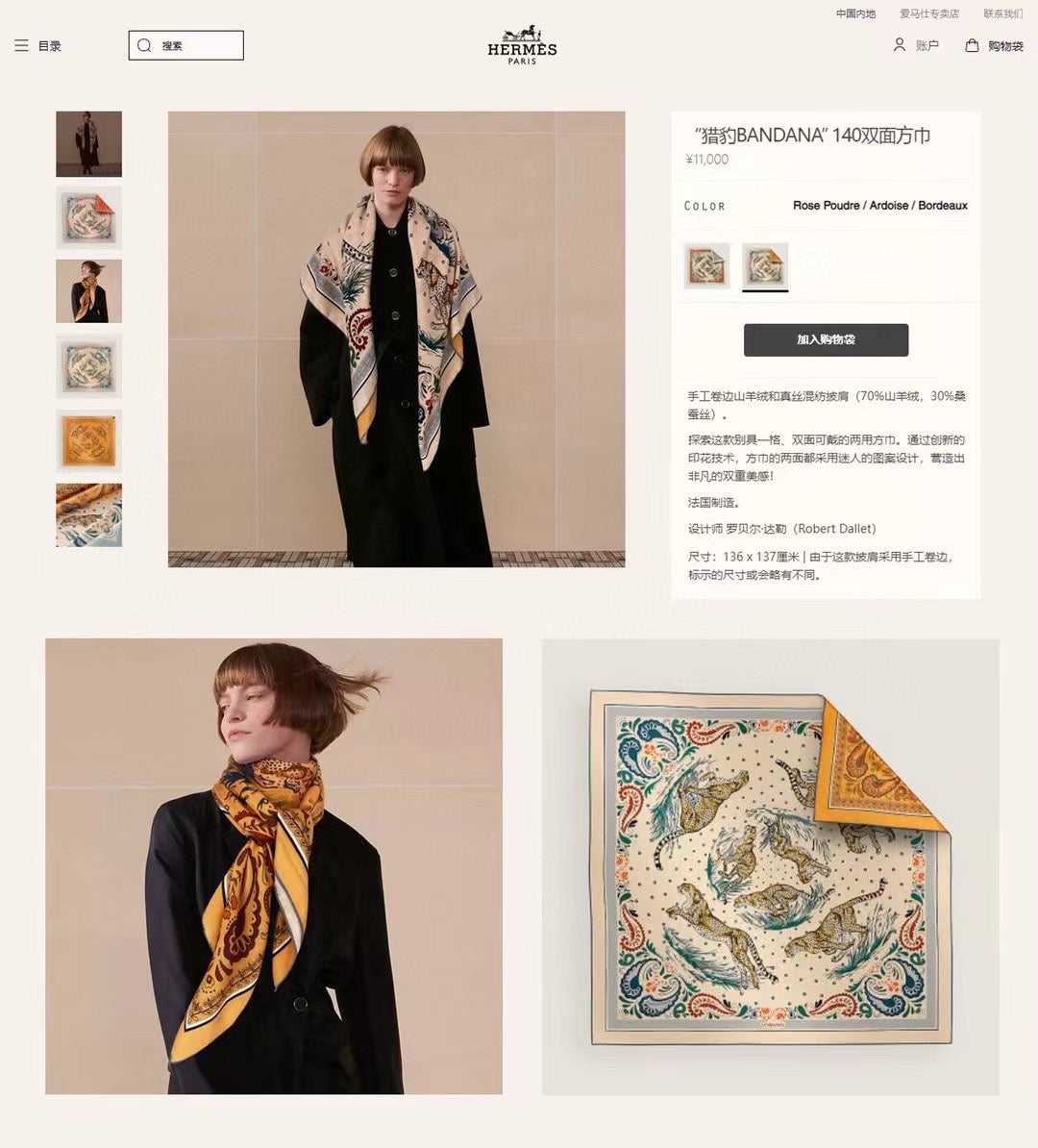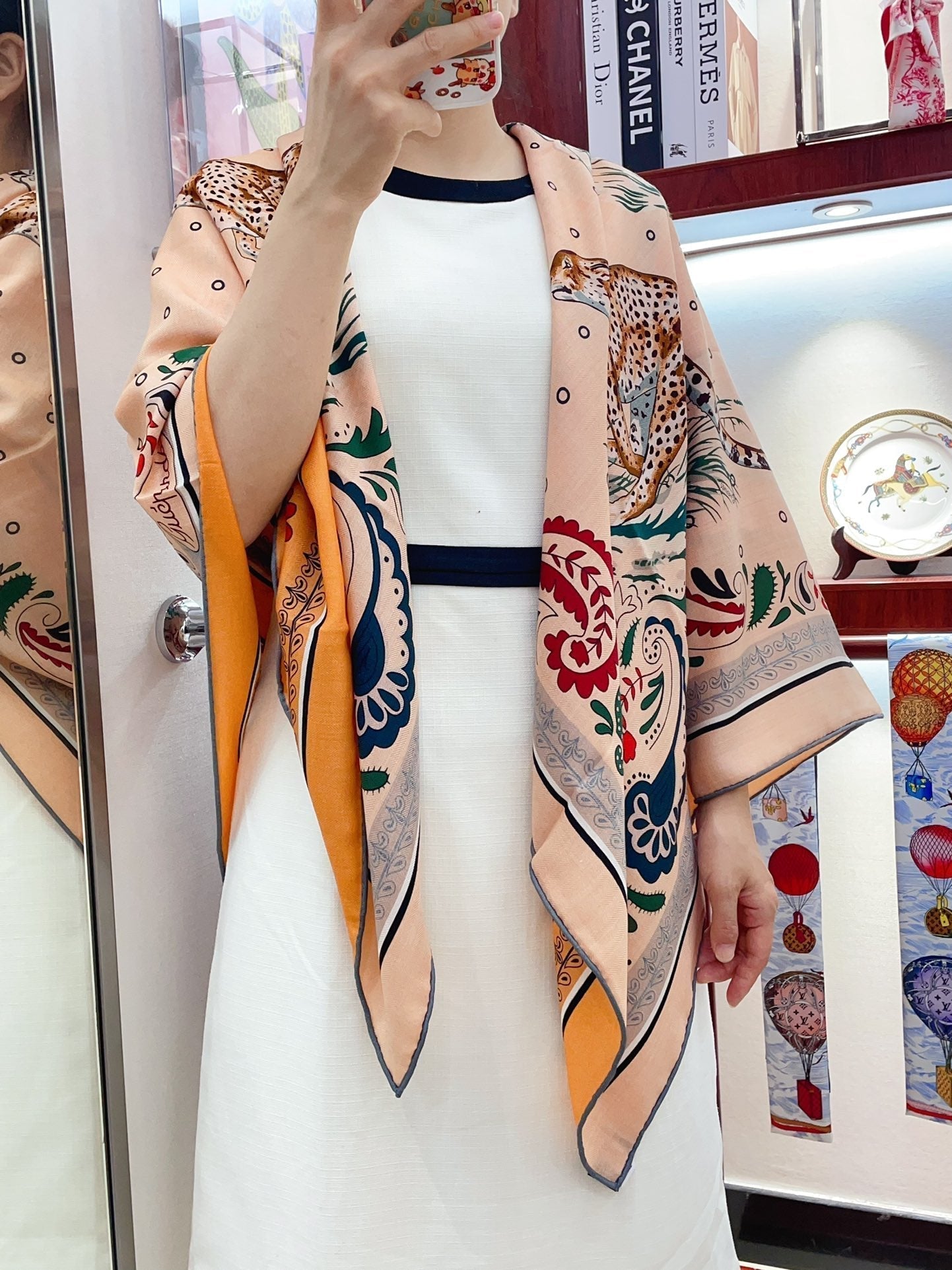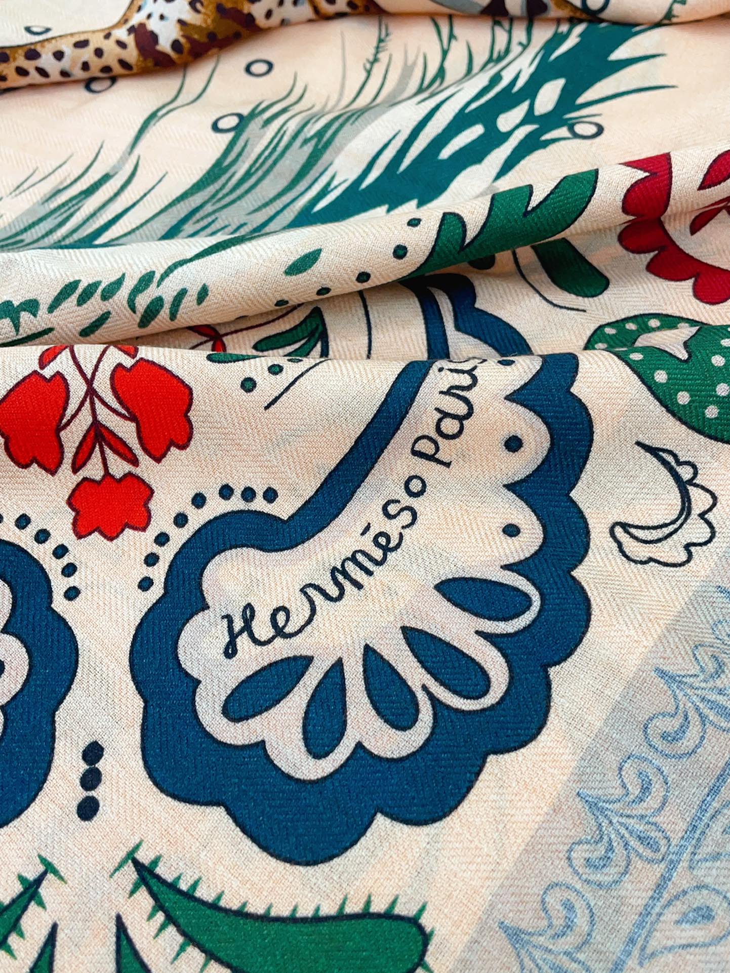 Guepards Bandana Double Face Scarf 140 CM In Beige Mix Orange Colorful Cashmere And Silk 334189