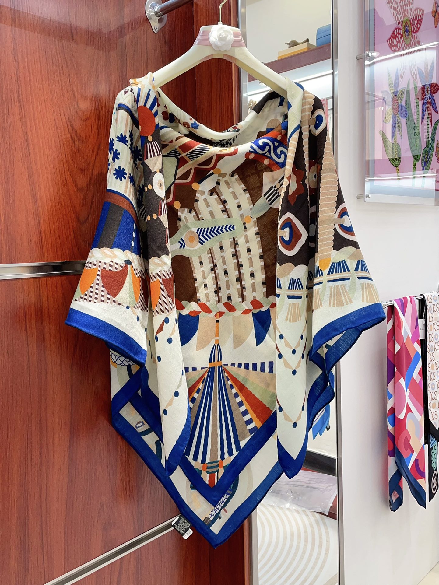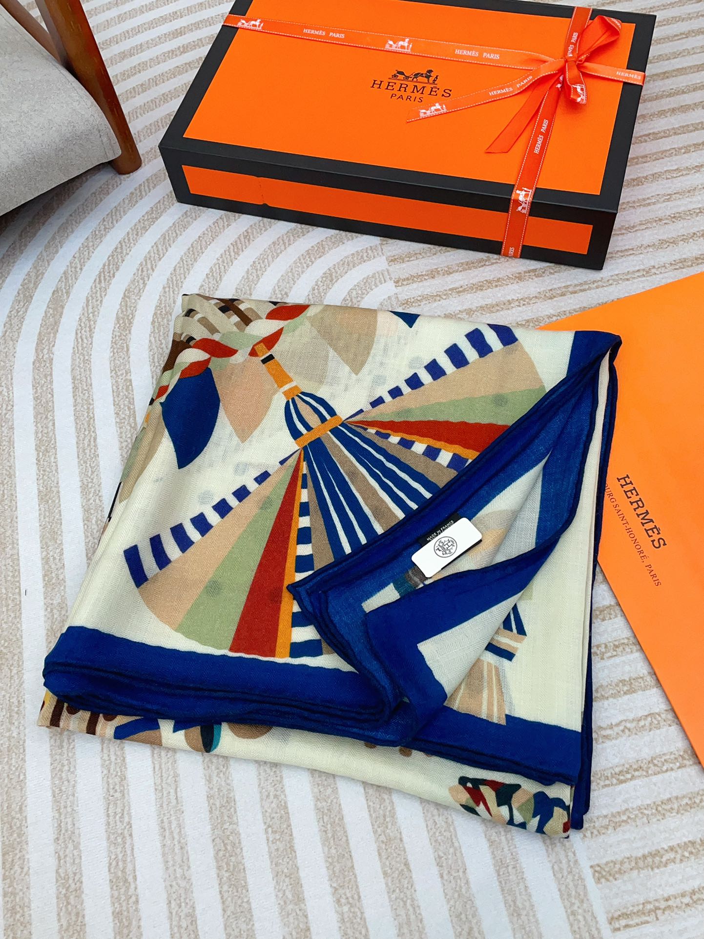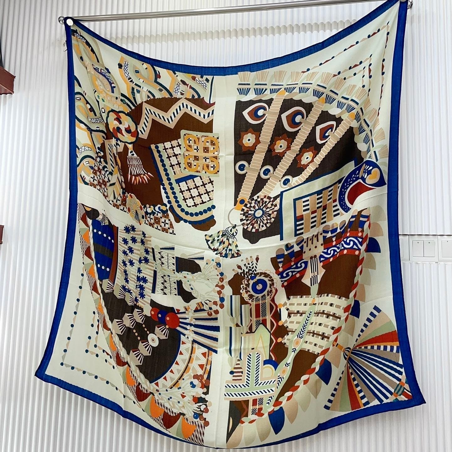 Haute Parure Scarf 135 CM White Colorful Cashmere And Silk 405067