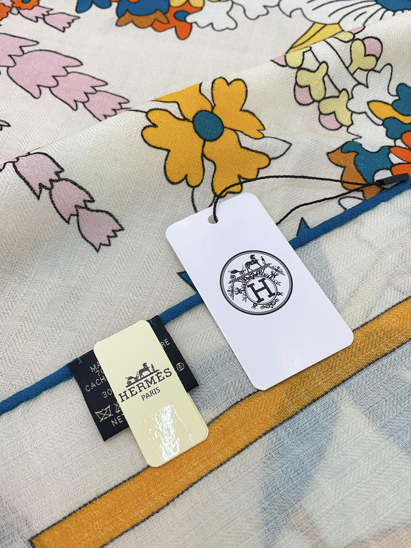 La Danse Du Printemps Scarf 140 In Yellow Colorful Cashmere And Silk 344366