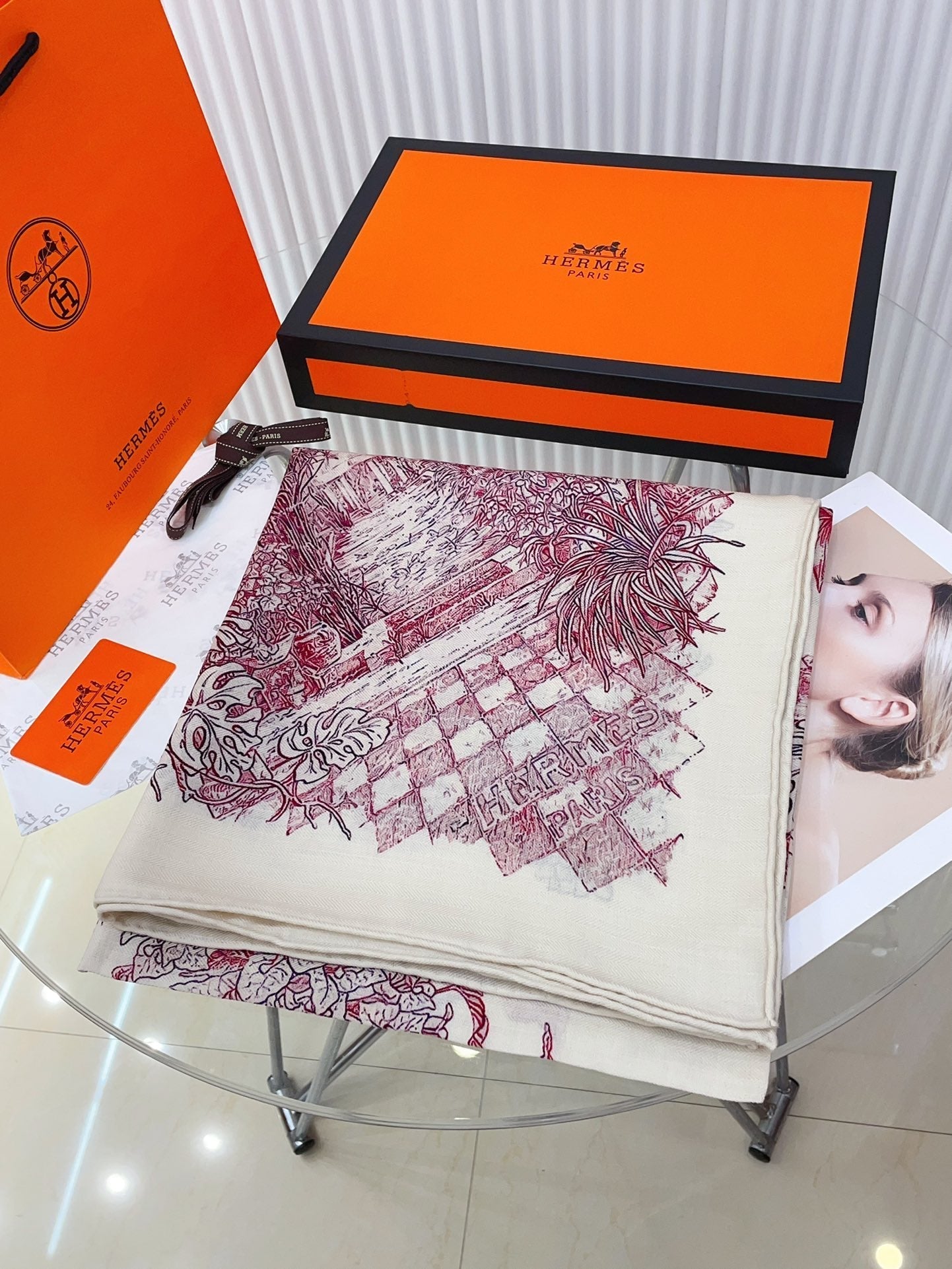 Le Jardin De Leila Au Bloc Shawl 135 CM In Pink Red Cashmere And Silk 316264