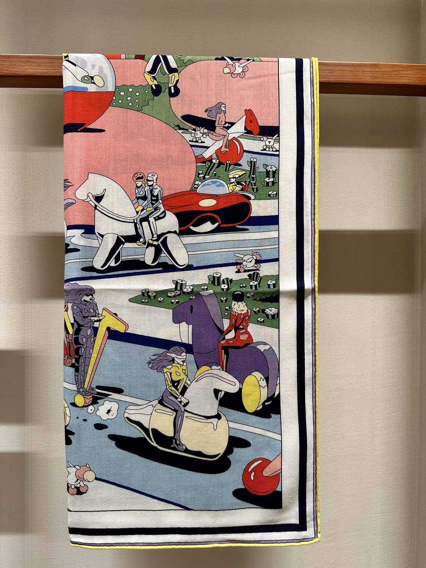 Locomotion Shawl 140 CM In Light Blue Colorful Cashmere And Silk 384147