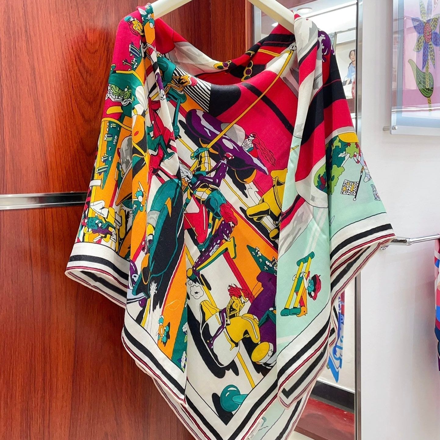 Locomotion shawl 140 CM In Light Turquoise Colorful Cashmere And Silk 378463