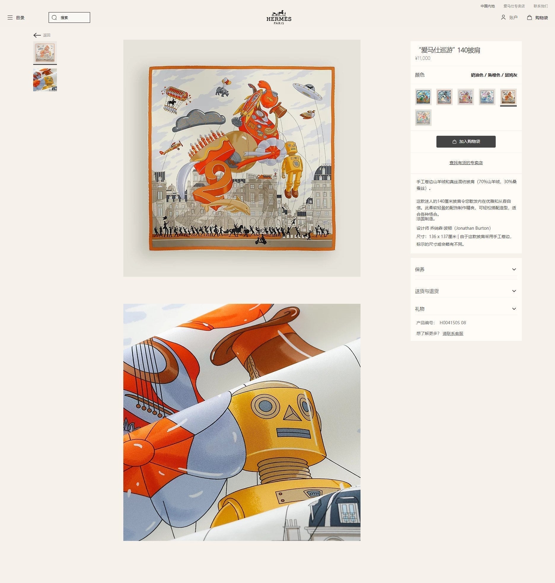 Material: 70% Cashmere, 30% Silk