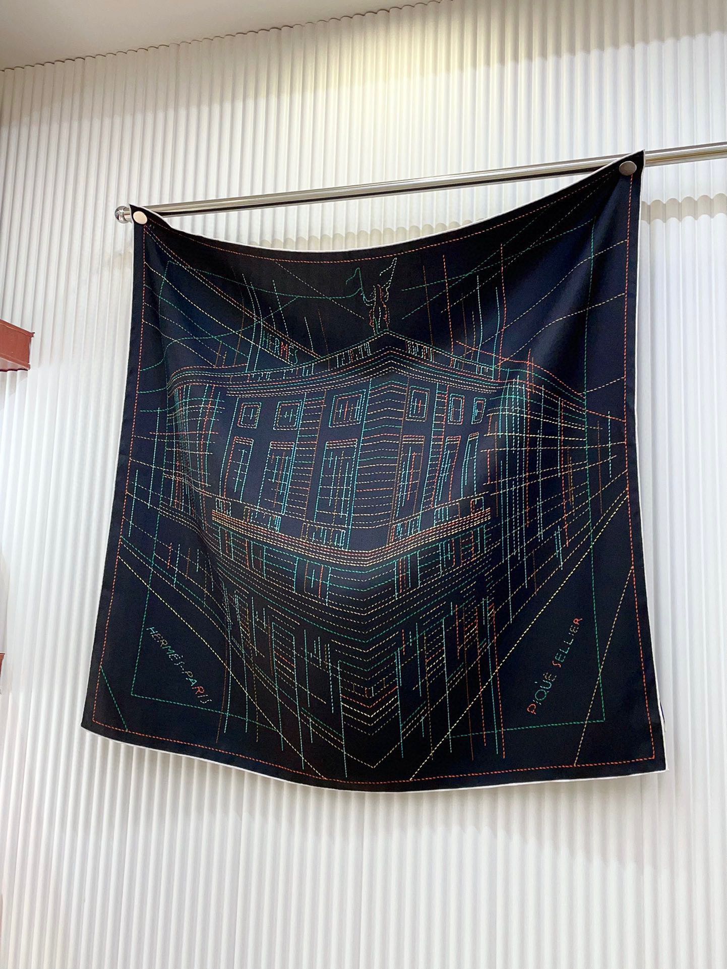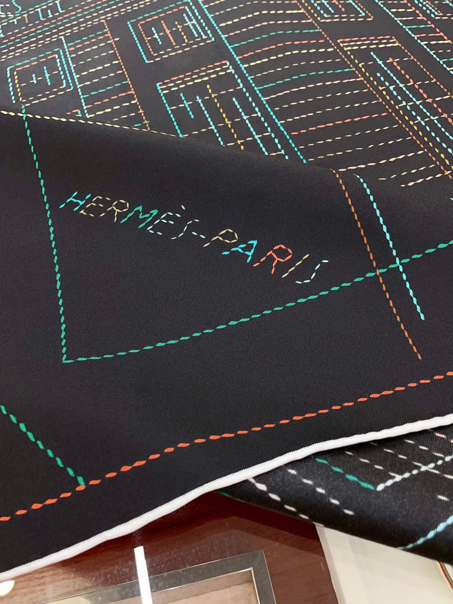 Pique Sellier Shawl 90 CM In Black Colorful Silk Twill 312868