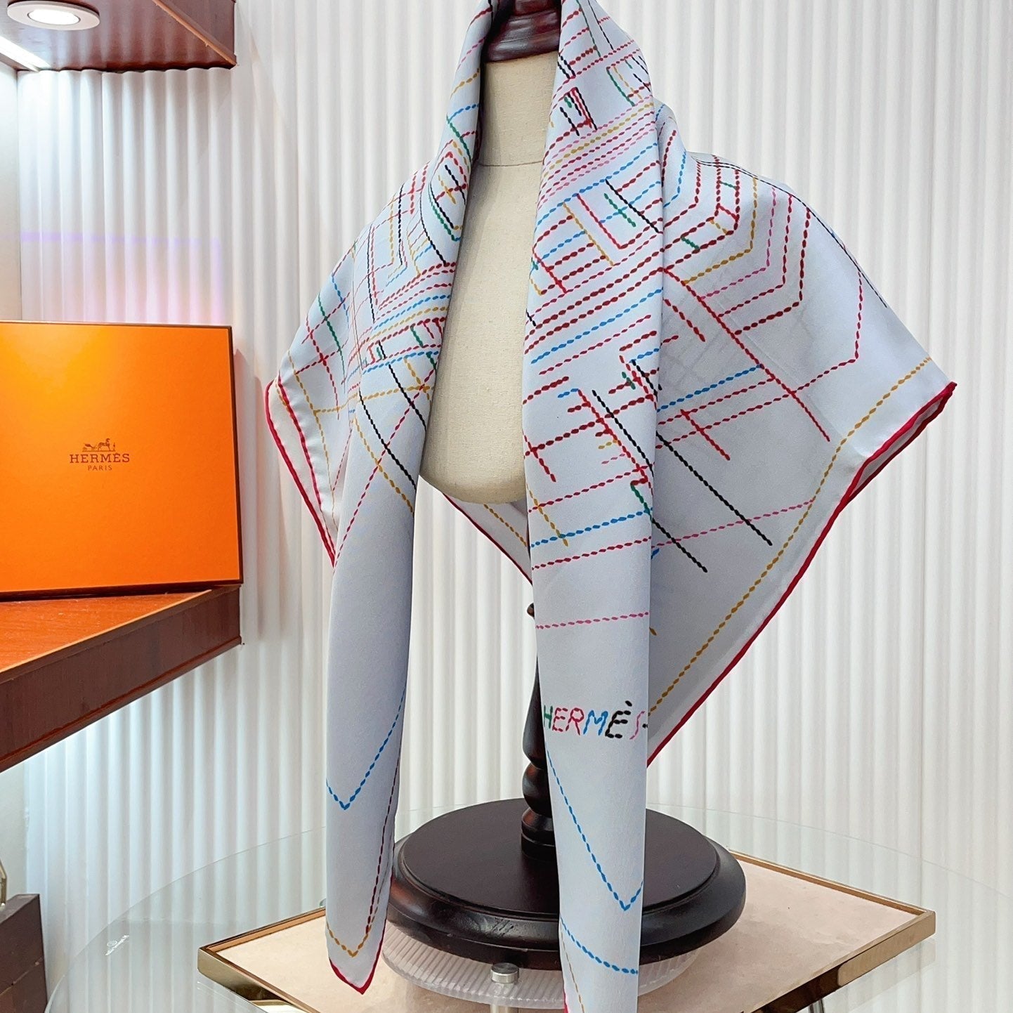 Pique Sellier Shawl 90 CM In Grey White Colorful Silk Twill 312869