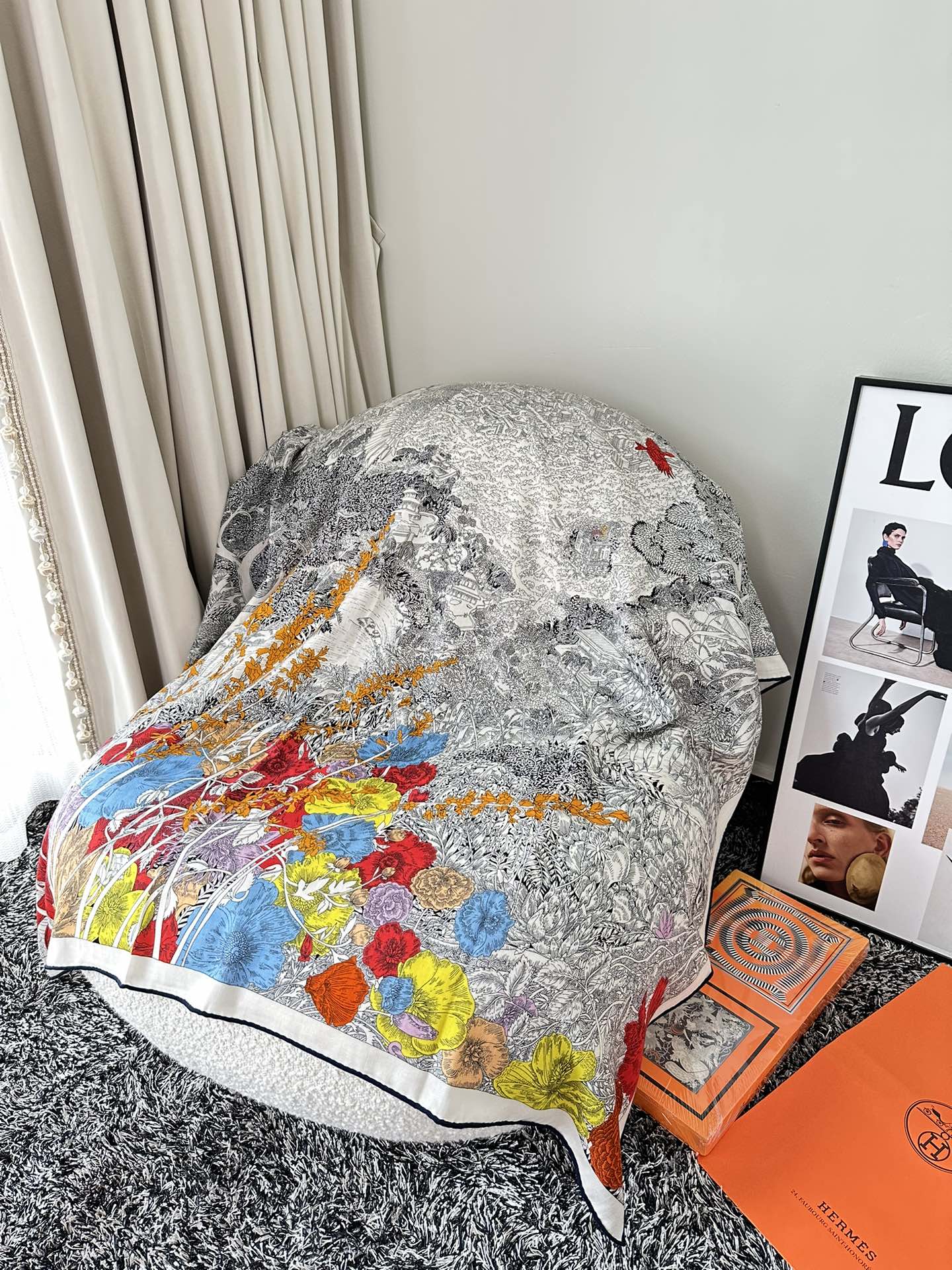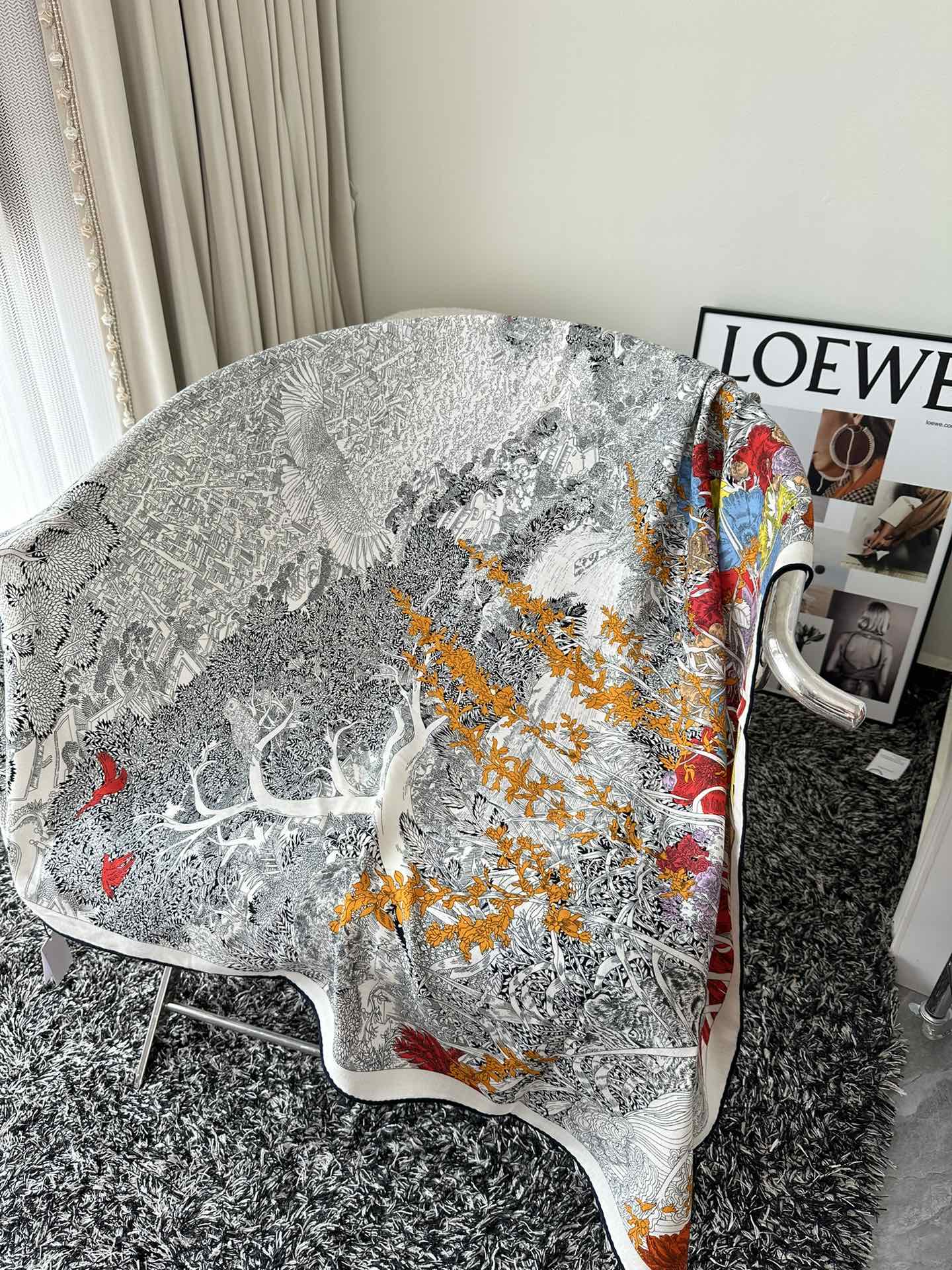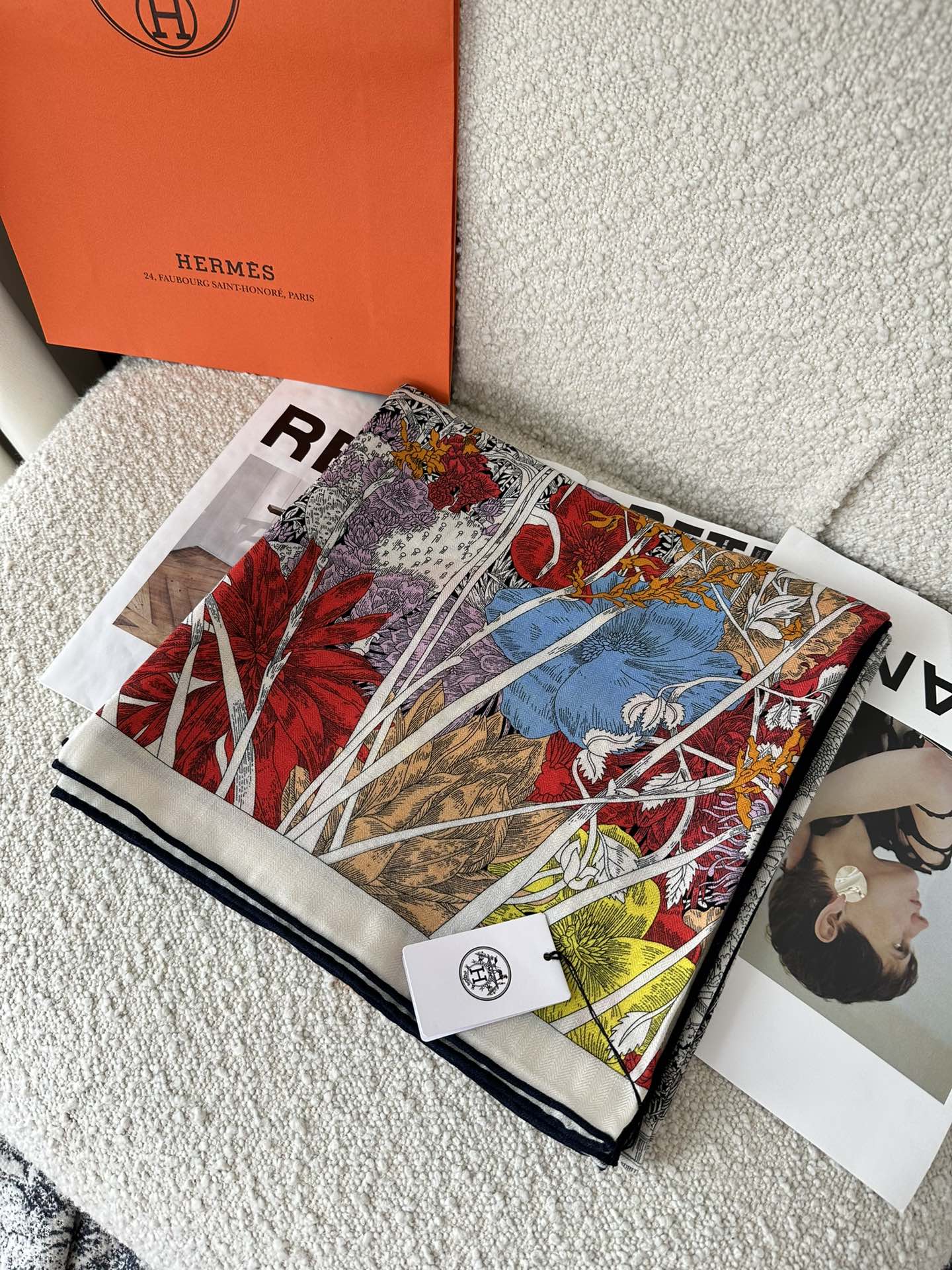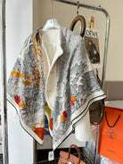 Retourala Nature Hermes Scarf 140 CM White Black Colorful Silk
