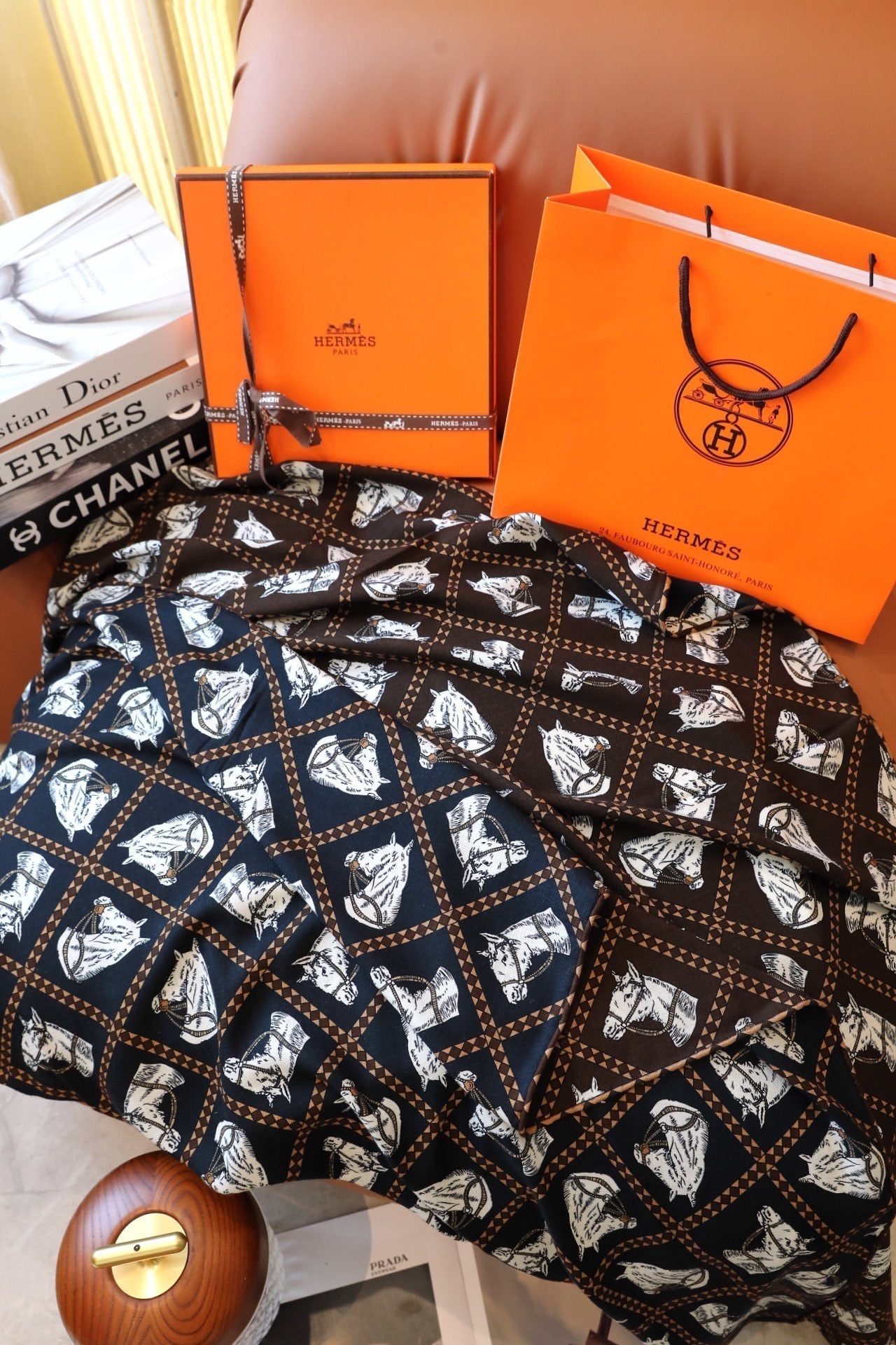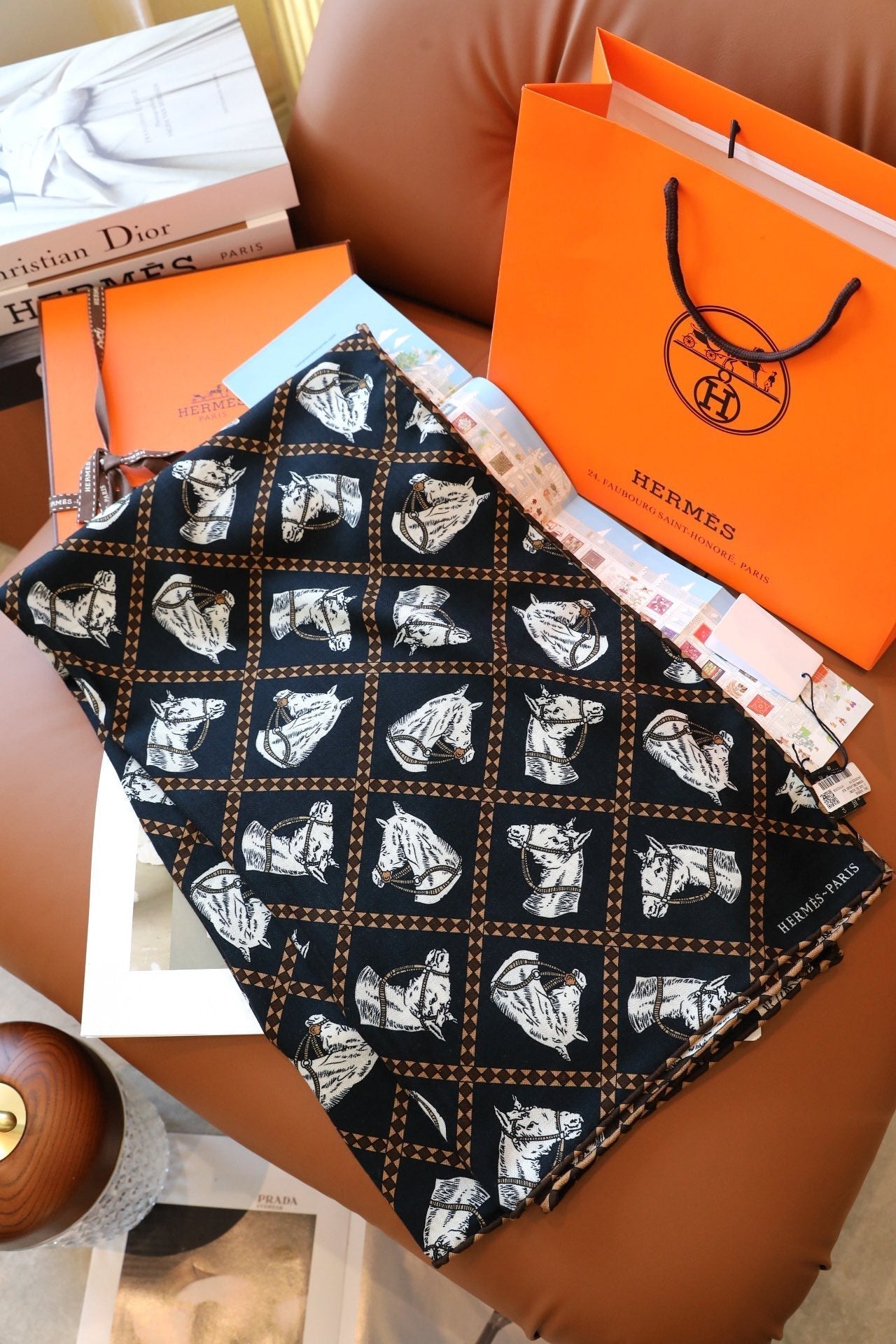 Scarf 140 CM In Black Mix White Cashmere And Silk 335765
