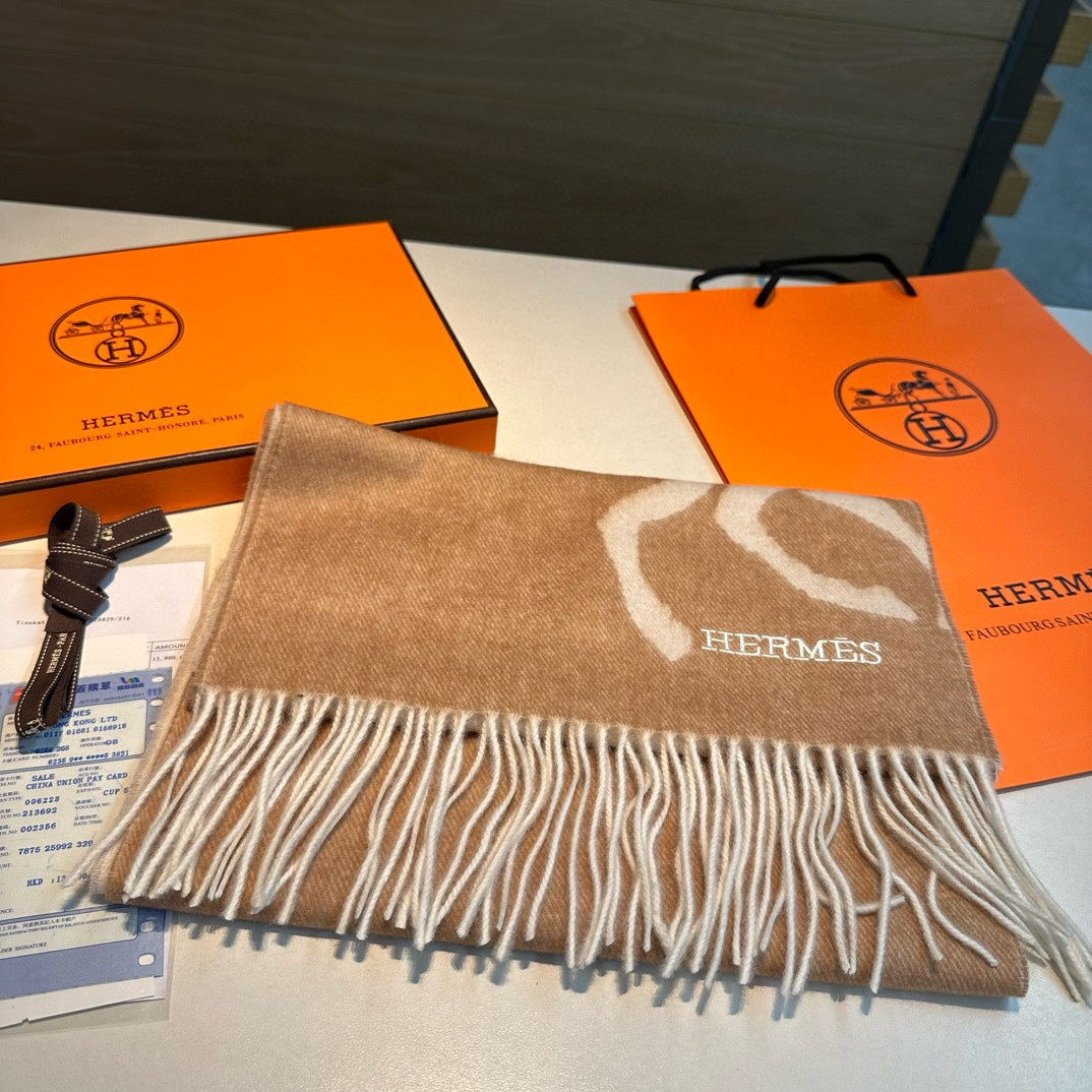 Scarf 180 CM Beige Mix White Wool