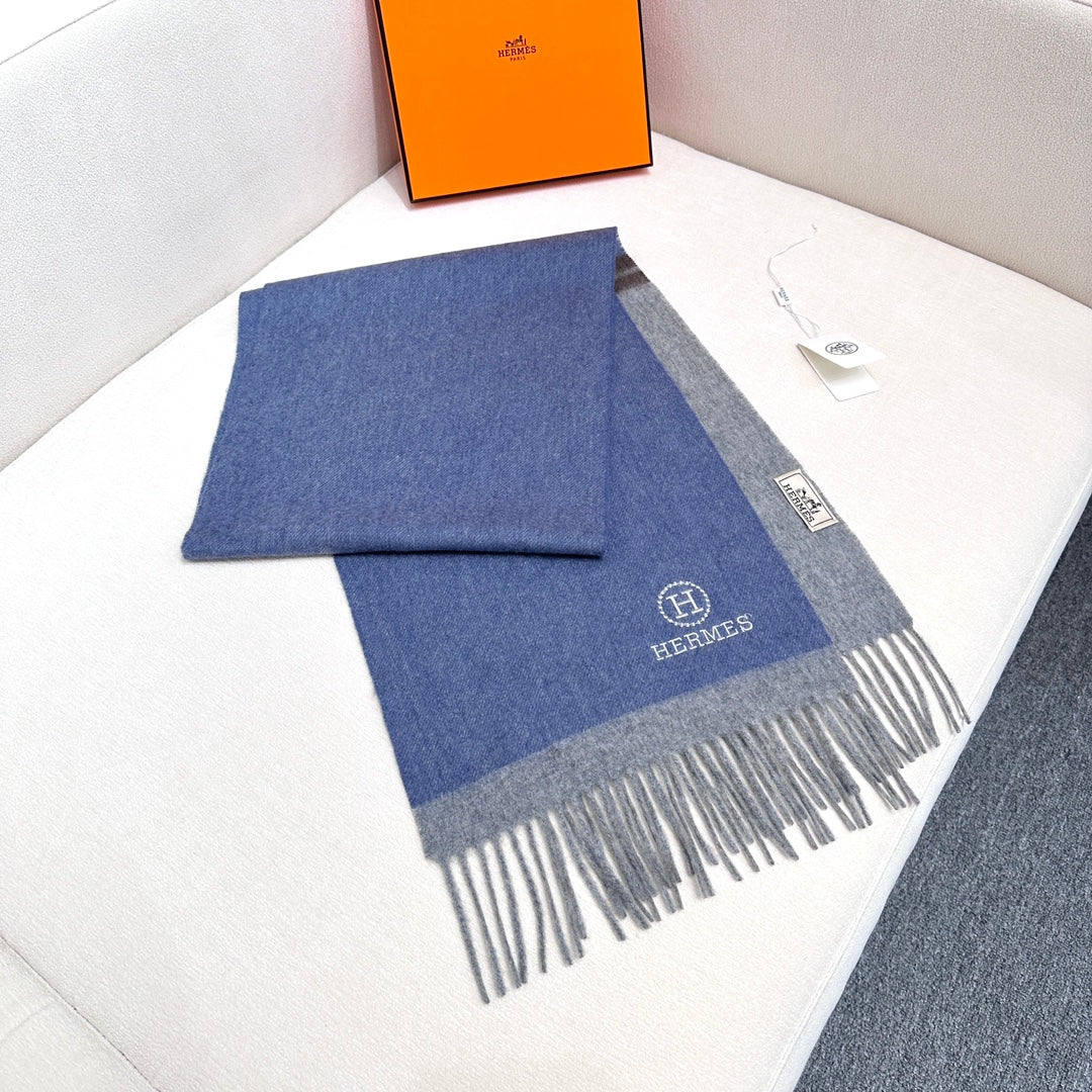 Scarf 180 CM Blue Grey Cashmere