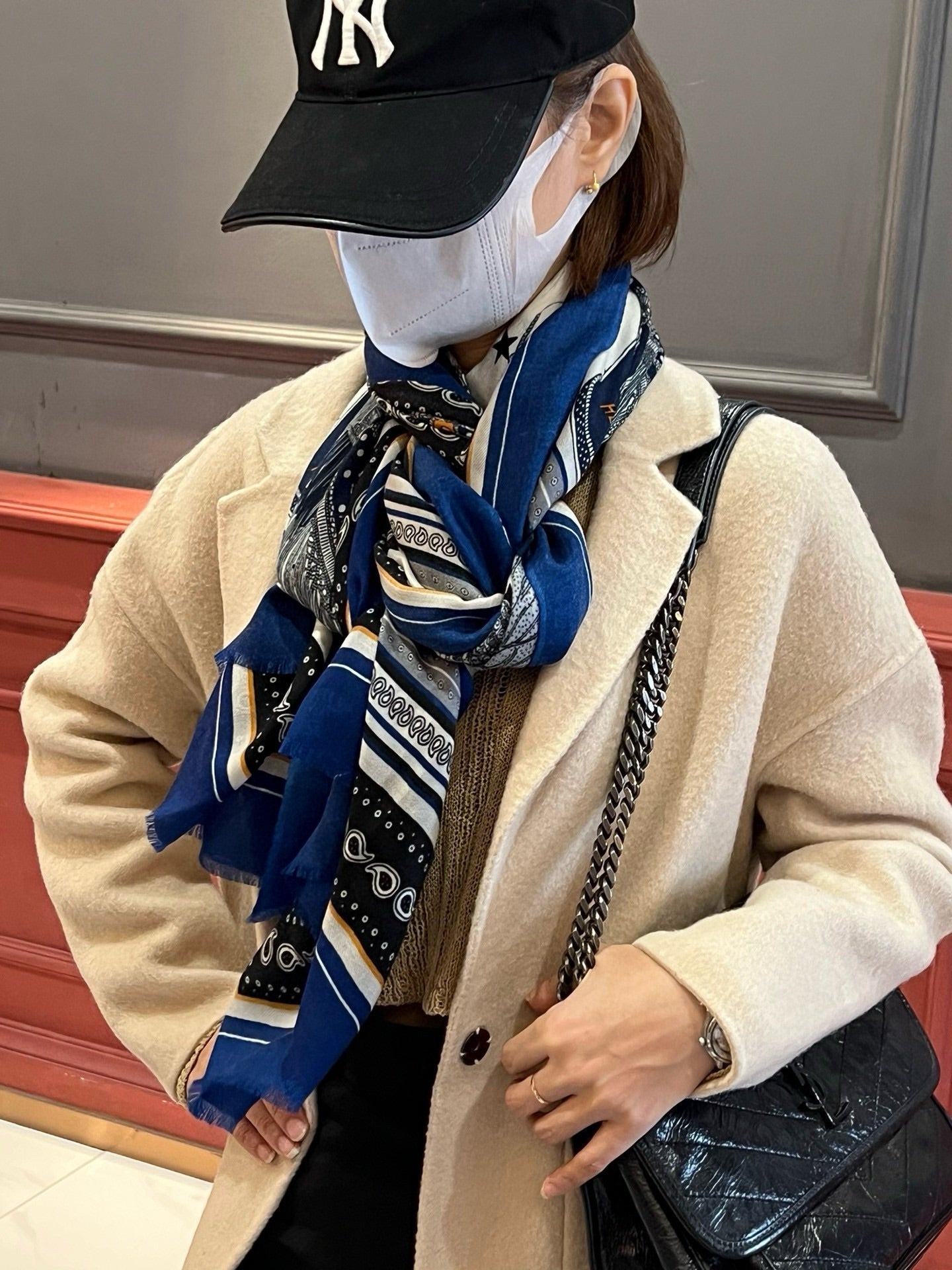 Selle De Dignitaire Bandana Shawl 200 CM In Blue Colorful Cashmere 265334