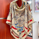 Stately Wheels Scarf 135 CM In Beige Colorful Cashmere And Silk 327468