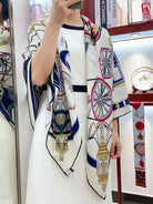Stately Wheels Scarf 140 CM White Colorful Cashmere And Silk 394588
