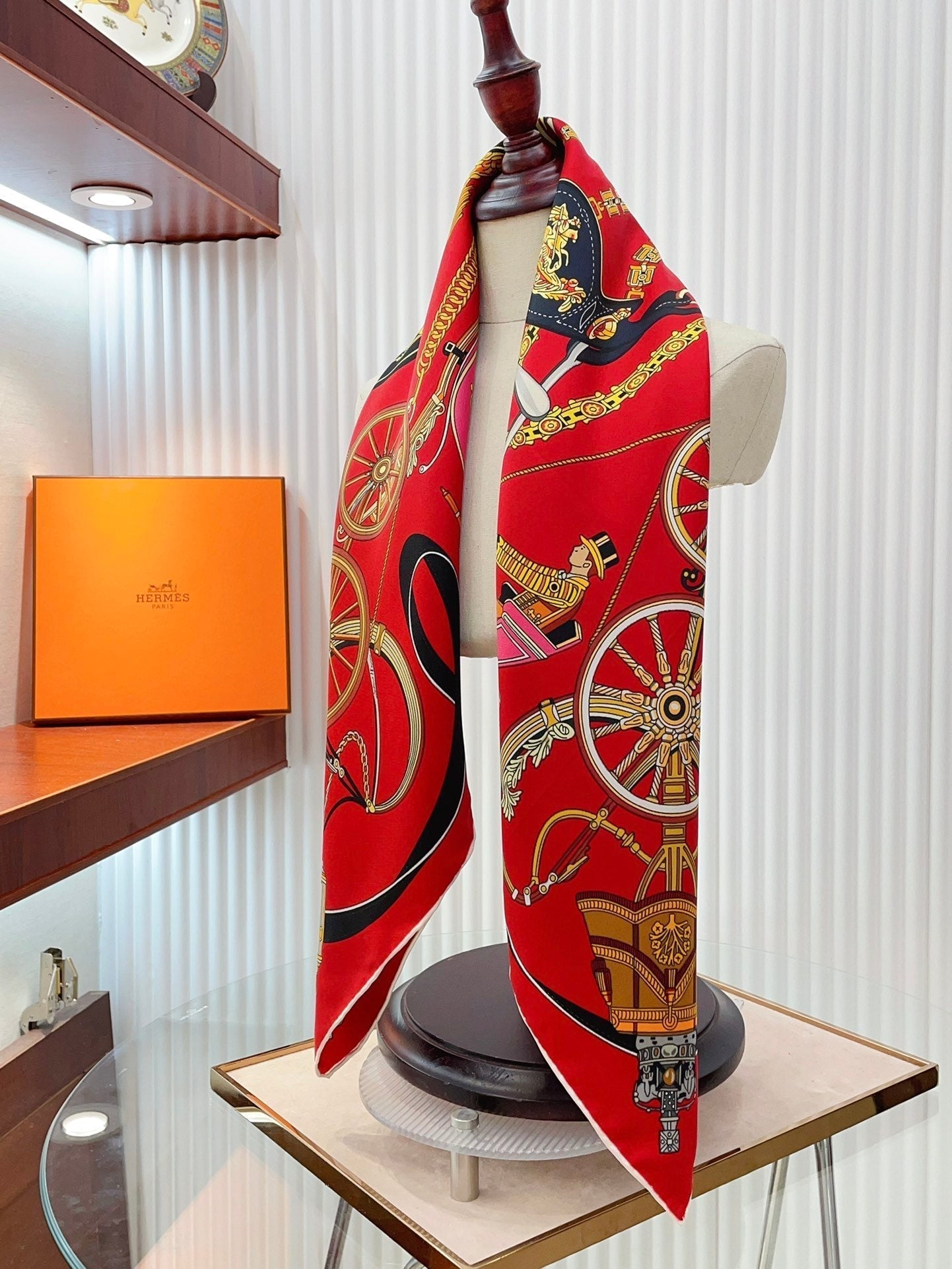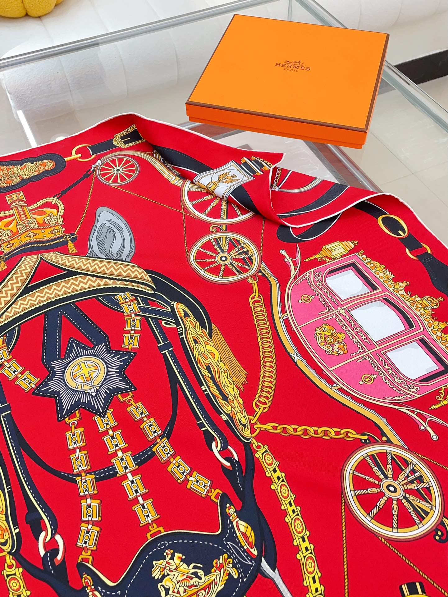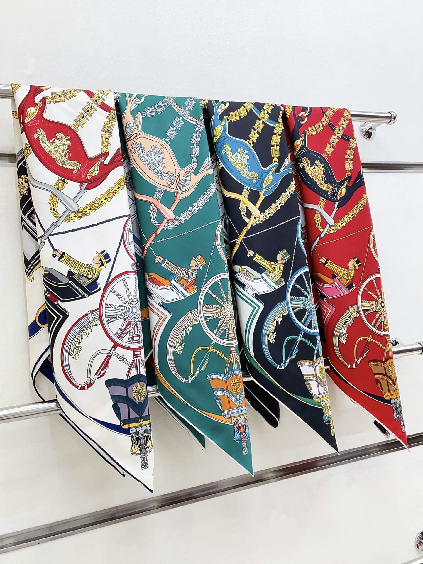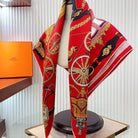 Stately Wheels Scarf 90 CM Red Colorful Silk Twill 312876