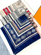 Tatouages Marins Bandana Shawl 135 CM Black White Cashmere And Silk 401091