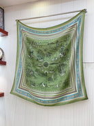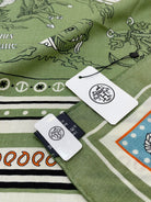 Tatouages Marins Bandana Shawl 135 CM In Green Colorful Cashmere And Silk 252311