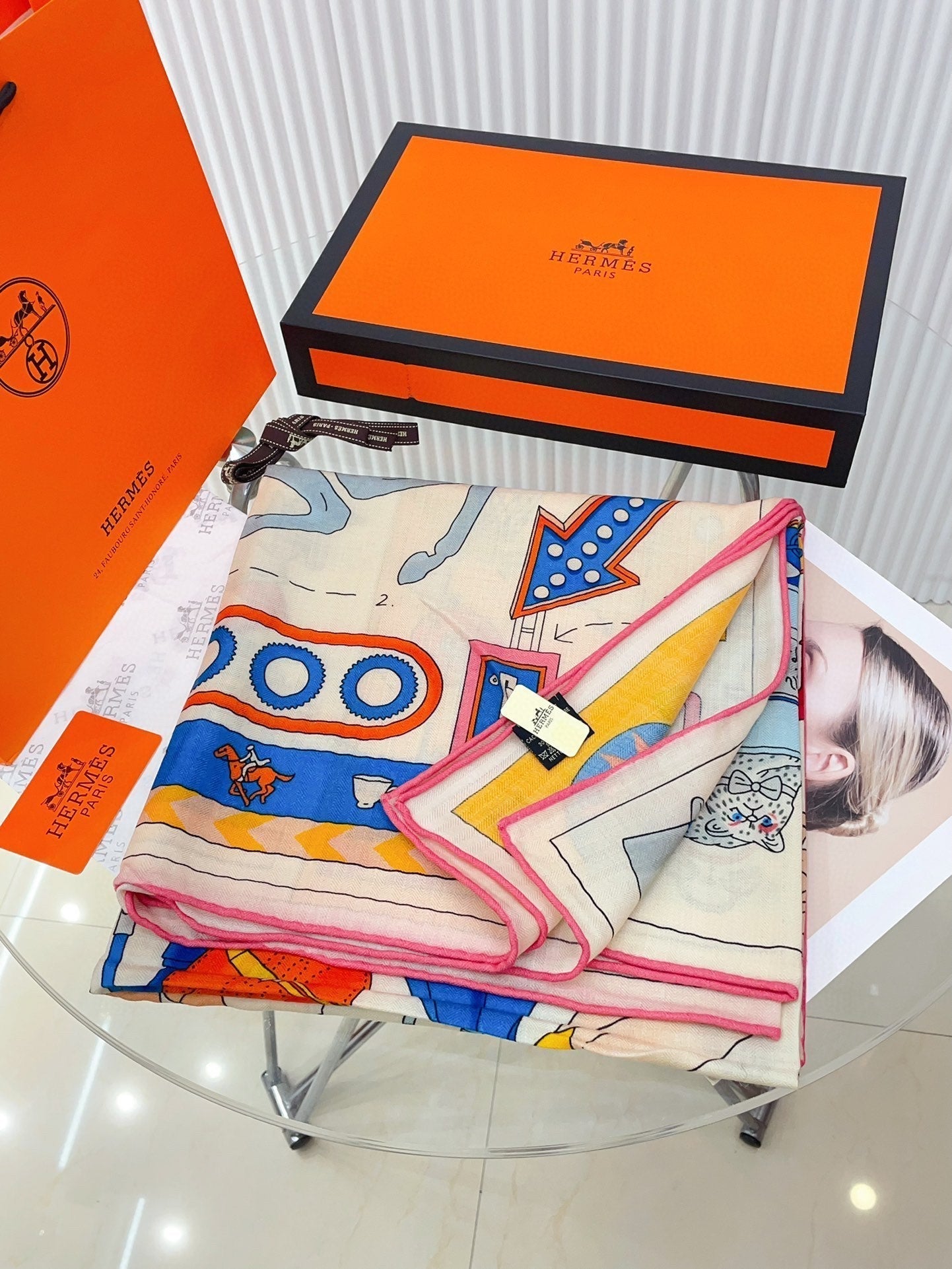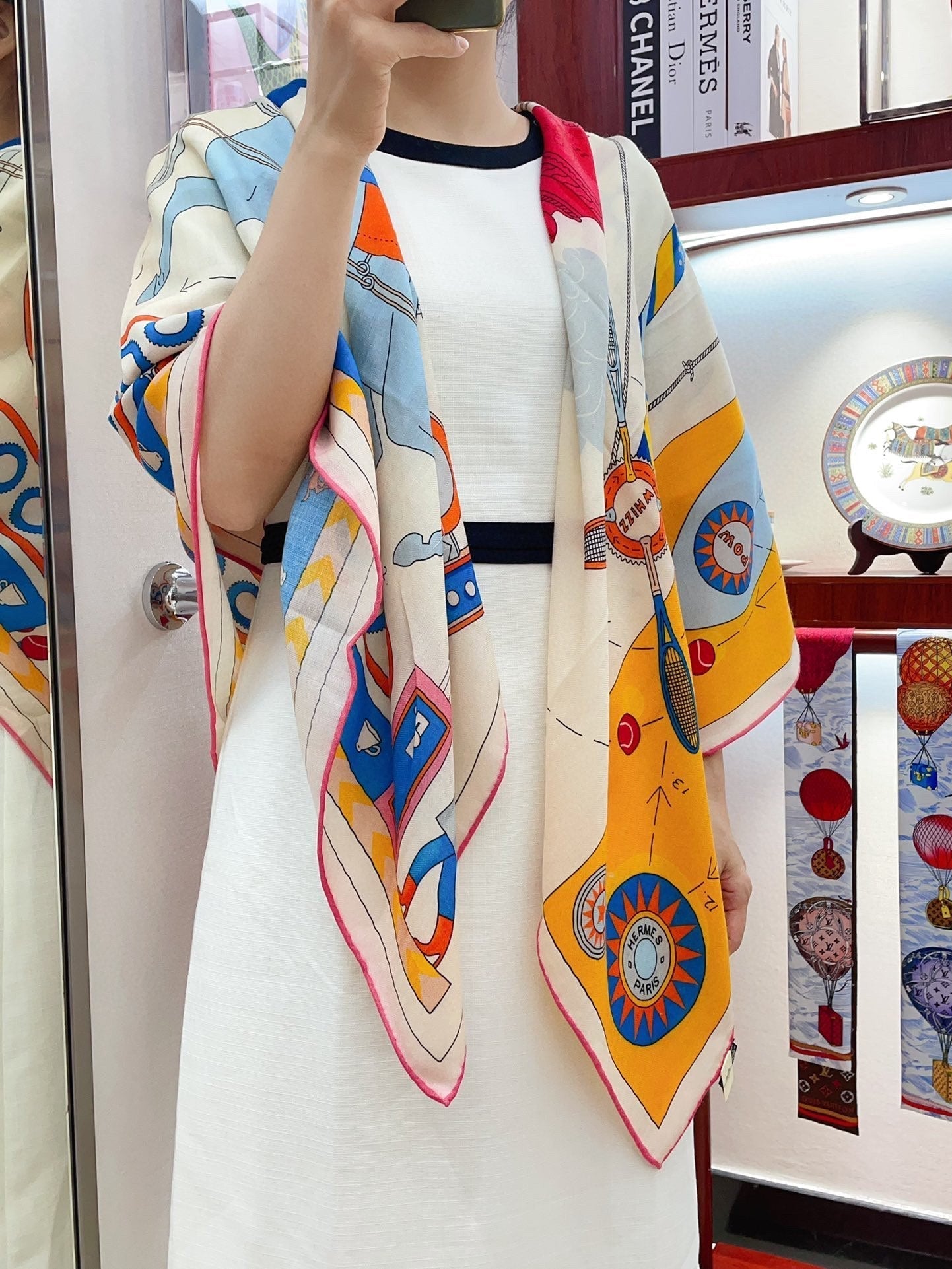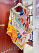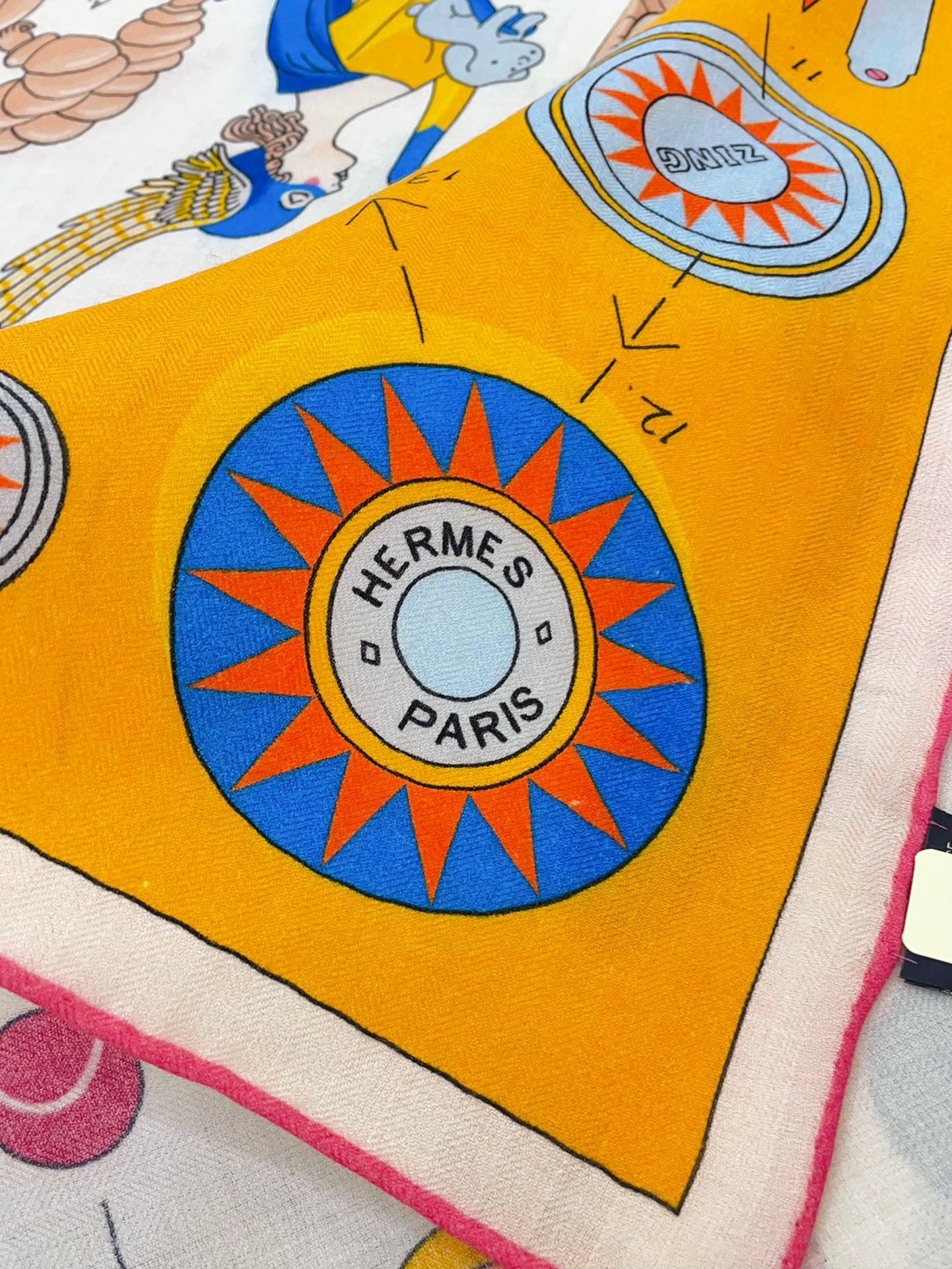 Tea For Two Scarf 140 CM Yellow Colorful Cashmere And Silk 403891