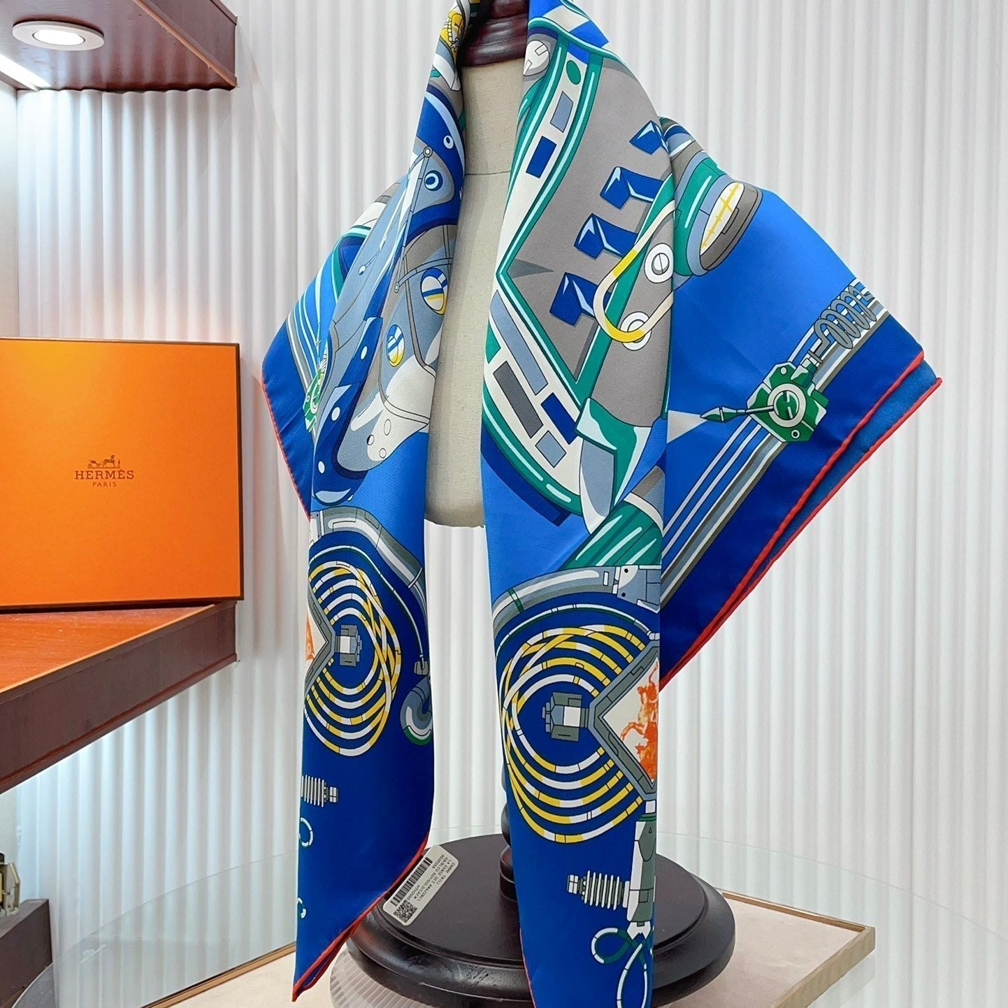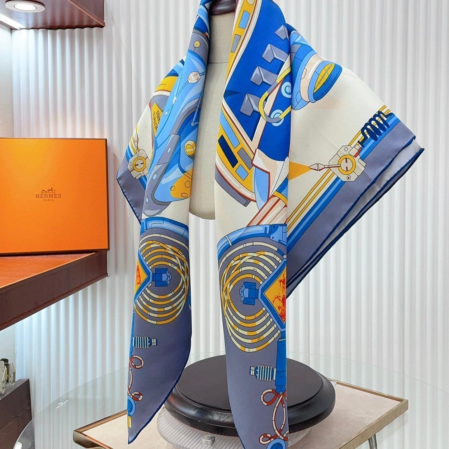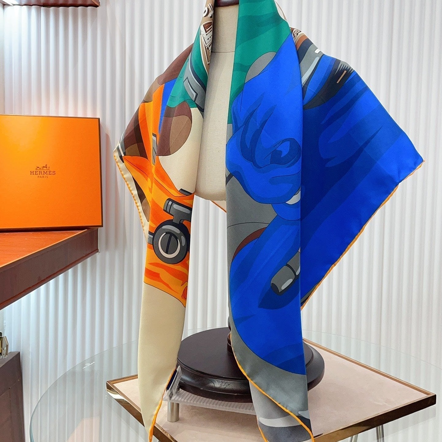 Cavalcades Scarf 90 CM In Blue Yellow Colorful Silk Twill 288859