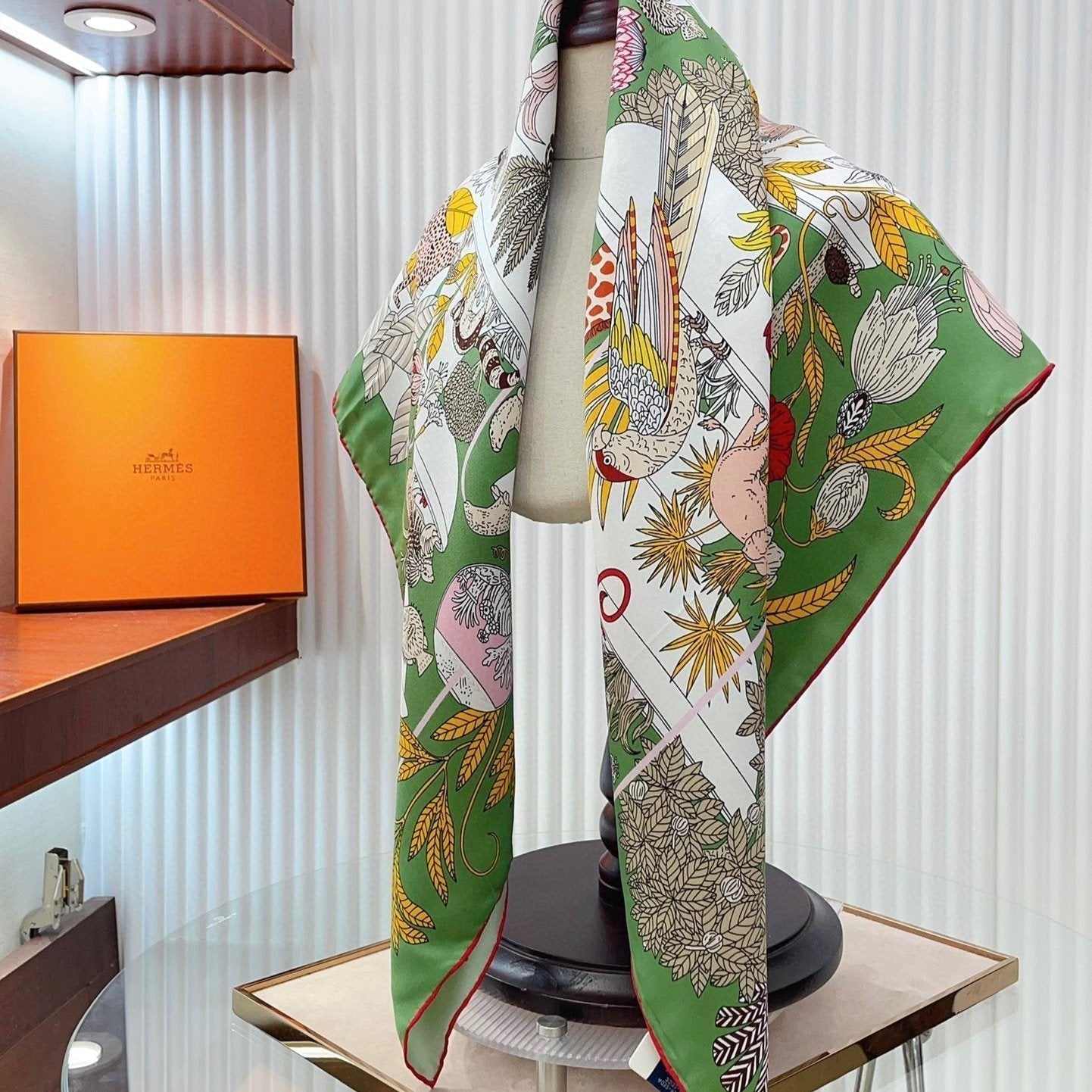 Precious Paradise Scarf 90 CM In Green Colorful Silk Twill 294486