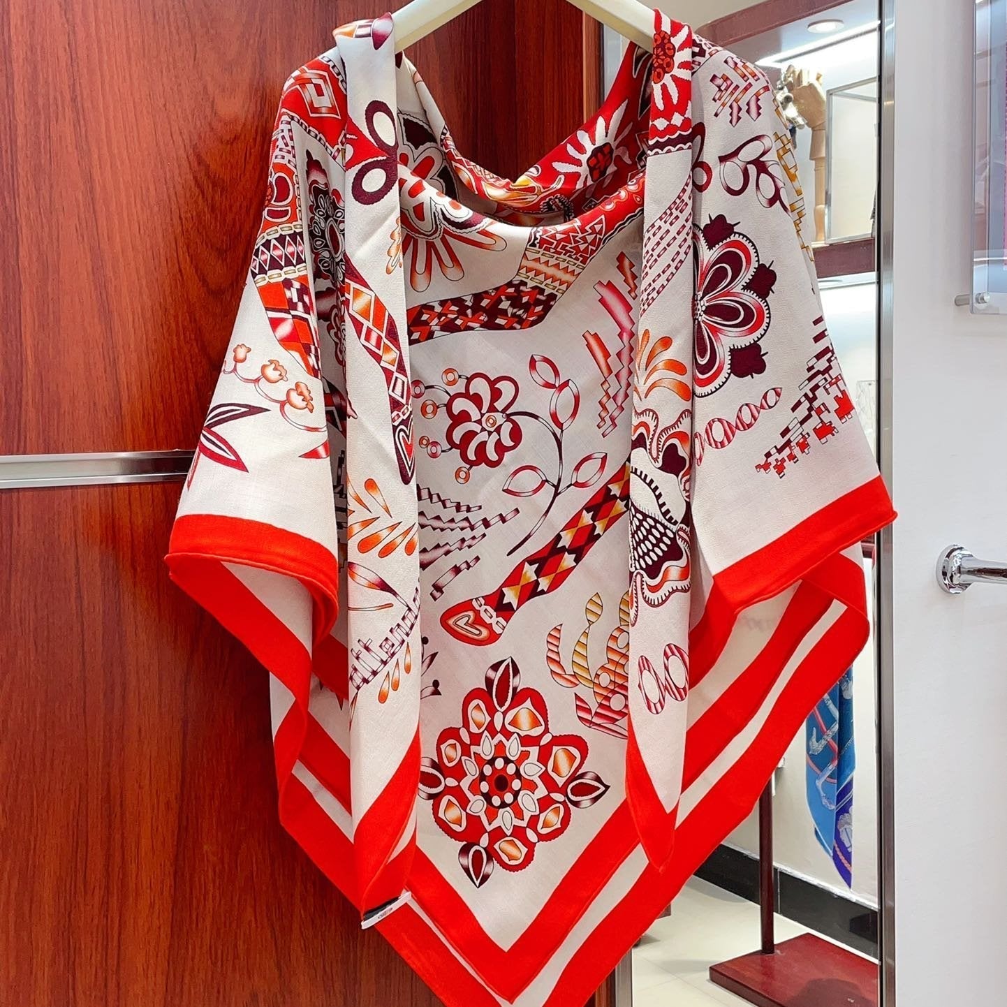 Selle De Dignitaire Bandana Shawl 200 CM In Orange Red Colorful Cashmere 265333