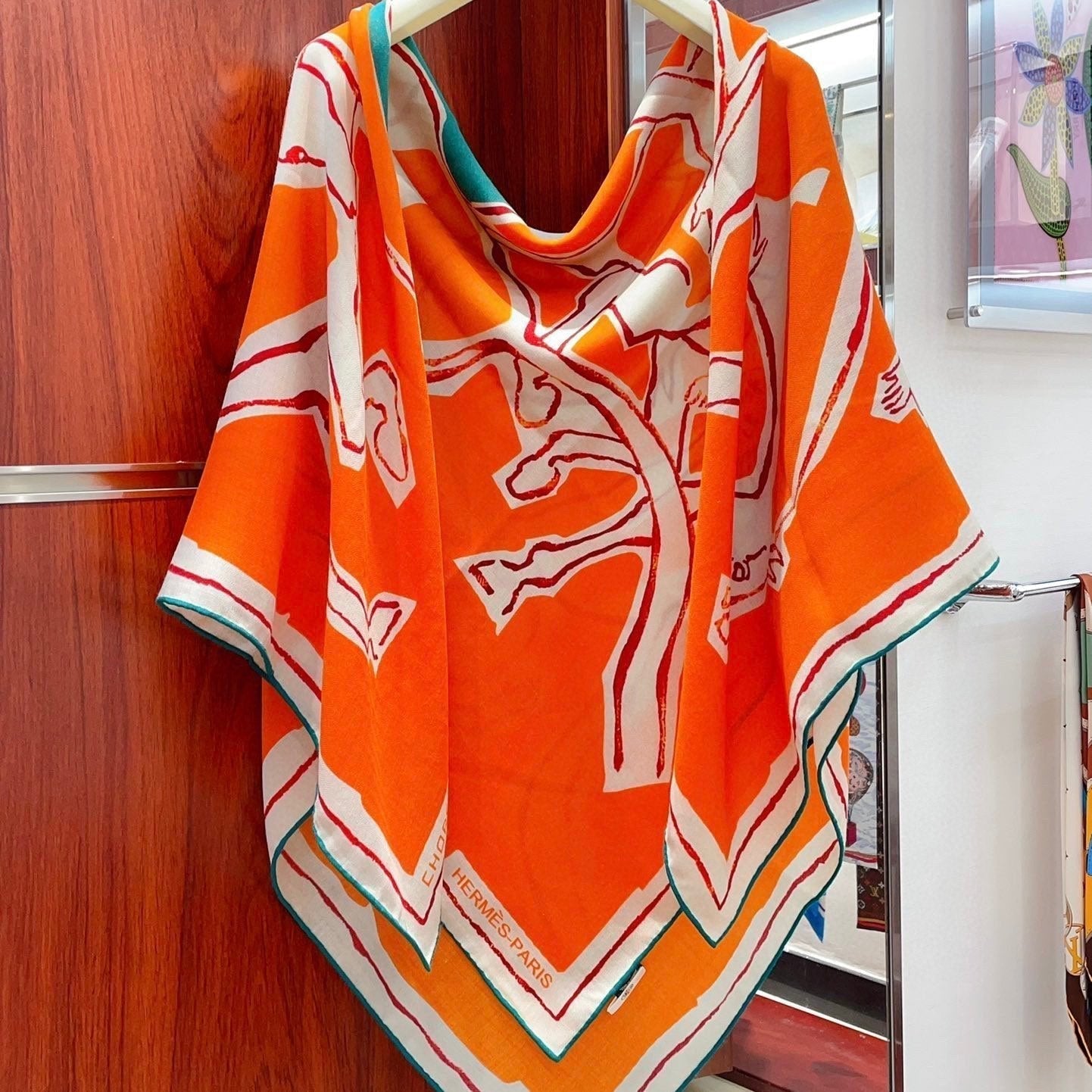 Choregraphie Equestre Scarf 140 CM Orange Colorful Cashmere And Silk 393170