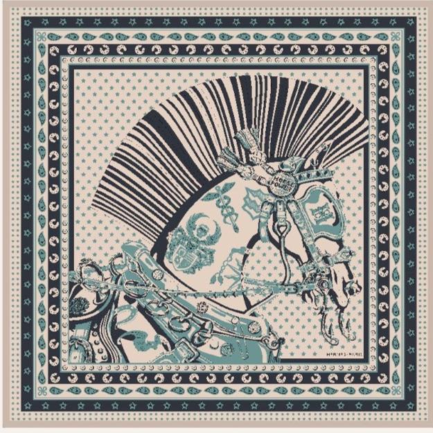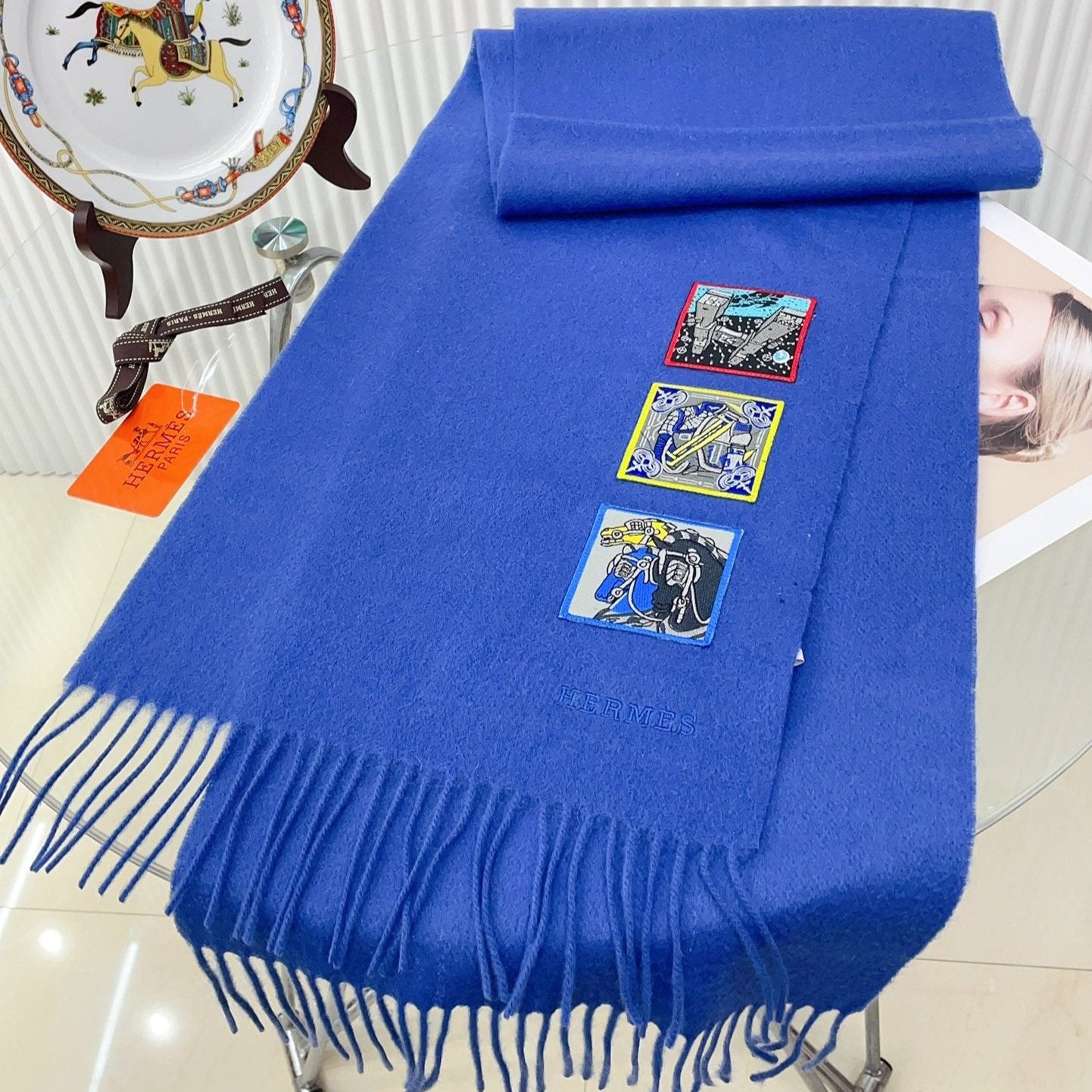 CASAQUE ENTRELACS EQUESTRES 190 CM SCARF IN AZURE BLUE CASHMERE